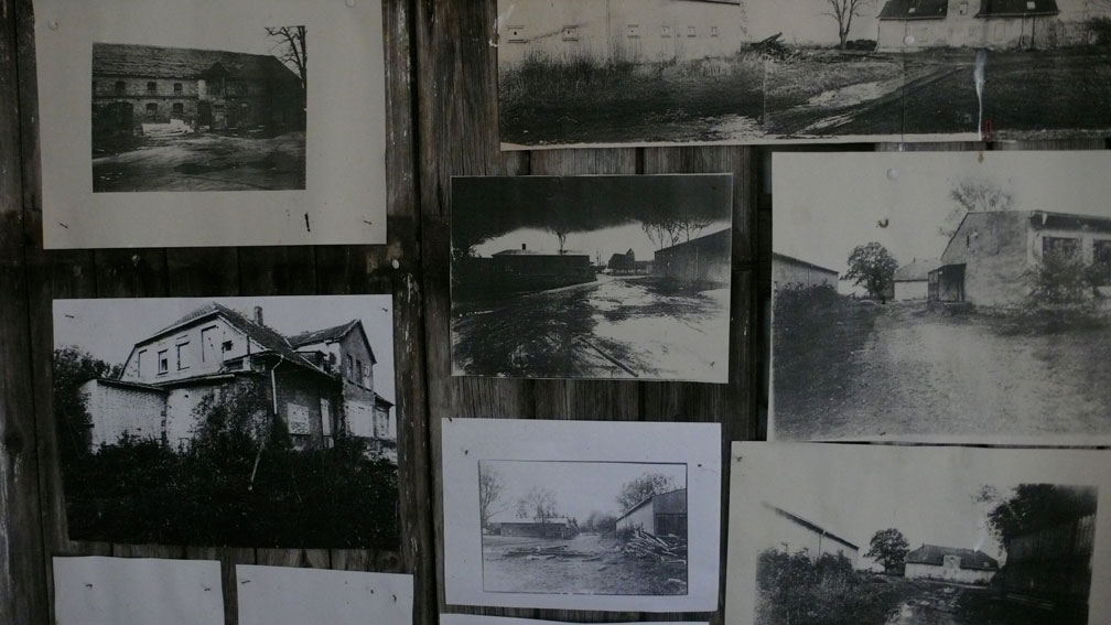 Was also war darzustellen. Situation von Haus und Hof vor 45, die DDR Situation, die nach der Wende und heute. Die Bewohner und Menschen darum, die Filme, die dazu in Bezug stehen, das historische Umfeld verschiedener Ziele und Zeiten-Auftrag. Und so wurde dann auch deutlich, wie alles von der Spannung täglicher Bilder zueinander und dem Text dazu lebt. Selbst aus gleichen Bildern anders gruppiert, ist es anders. Im Film und im Theater nennt man das Regie. Wenn man in falschen Siutation sich überraschend findet, sagt man: ich glaube ich bin im falschen Film. Nichts stimmt mehr. Und das Unglück ist damit gemeint. So war das hier. Am Ort, nachdem ich zurückkam und so wurde daran täglich gebaut, es wieder stimmig zu machen. Anders als früher, aber aus dem was war, und inzwischen, hier und dort und weltweit. An einem Haus und Leben und Ort.