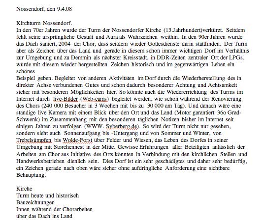 neuer Anlauf an Sachen Kirchturm Nossendorf.