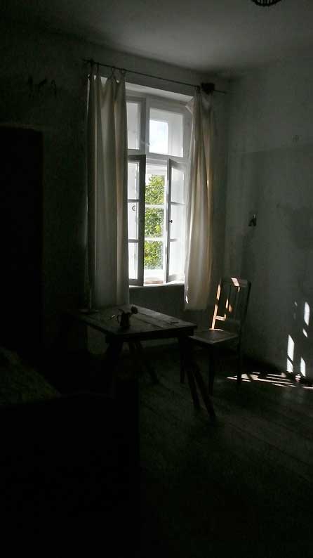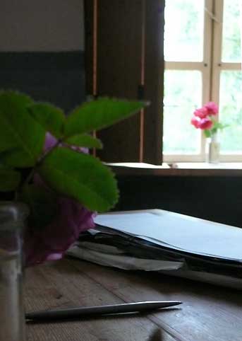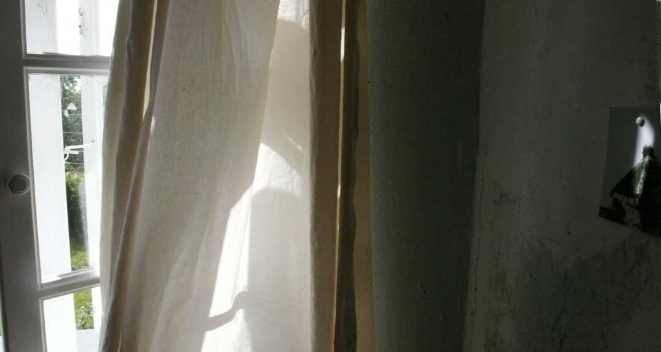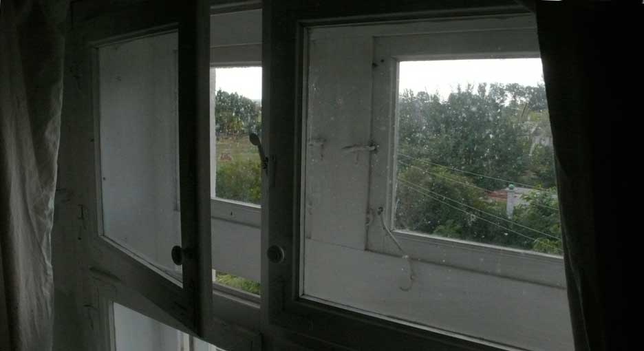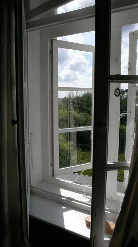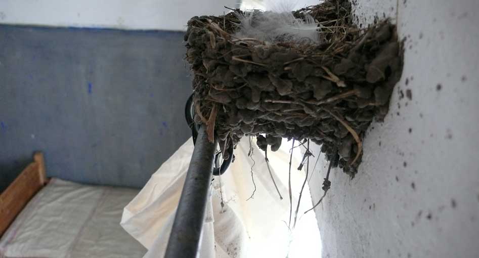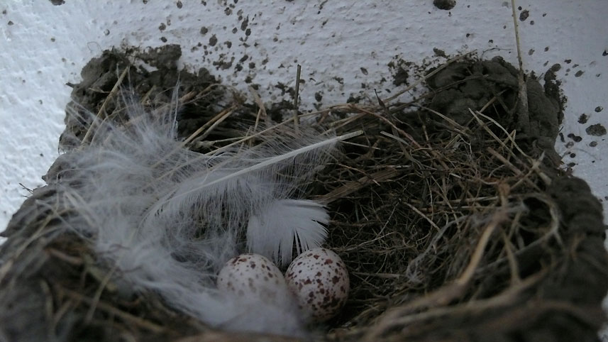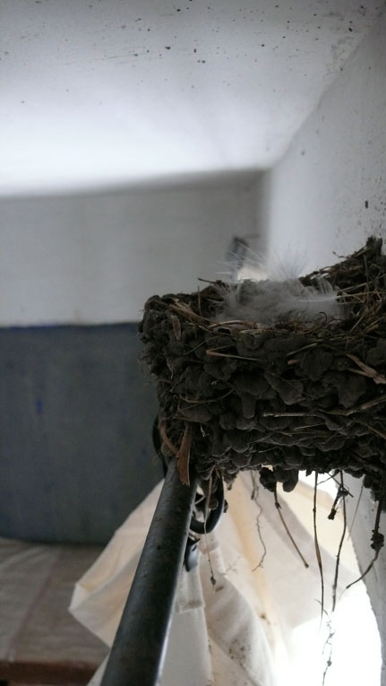 nun haben wir sie innen. Und manchmal hören wir es auch klappern über die Dächer auf der Stange statt Strohdach gegenüber