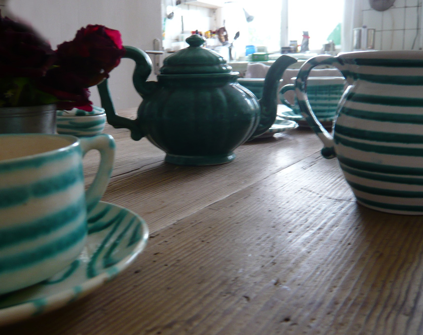 Und dann kam abends noch das Paket auf den Tisch mit den alten Gmundner Tassen und Kannen und Schalen aus Grundlsee, dem Haus der Brigitte -im letzten Jahr noch da-, und mit ihnen die Erinnerungen an diesen Wunderort der Stationen durch die Welt. Nun hier in N. wie nie gedacht. Wehmut schleicht ins Herz, freudigen Danks. Was N. nicht liefern konnte, löste G. ein. Und nun gibts an N. zurück.