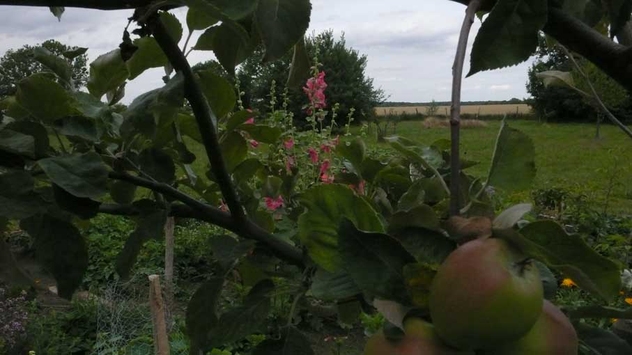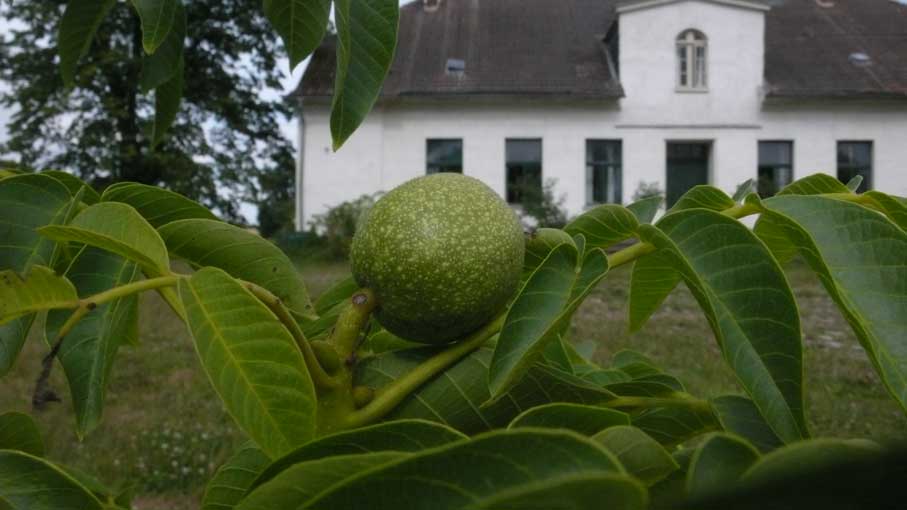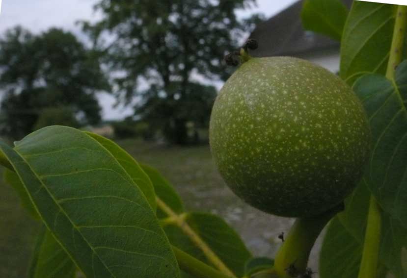 Auf dem Hof die 1 Euro-Bäume Nuss aus dem Ausverkauf vor 3 Jahren, nun sind sie durchgebracht. Fruchttragend. Viel Mühen. Sie stehen dort, auf dünner Muttererde, durch das ehemalige Pflaster durch brechen sie sich in die Erde. Da müssen sie nun durch, heisst es ganz schön.