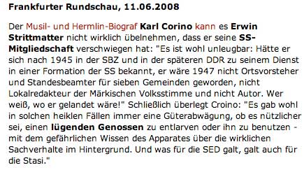 Könnte man sich nicht eher vorstellen Strittmatter ist geschlagen am meisten dadurch, dass er diese interessanteste Geschichte seines und unseres Lebens nicht zum Gegenstand seiner Textes machen konnte. Wie so oft, es wird geschrieben, gefilmt, auf dem Theater sich wichtig genommen, und die wichtigsten Dinge bleiben ausgespart. Aber für wen, wie präsentieren. Gibt es dafür Leser, Zuschauer, Orte? in unseren gewohnten Systemen.