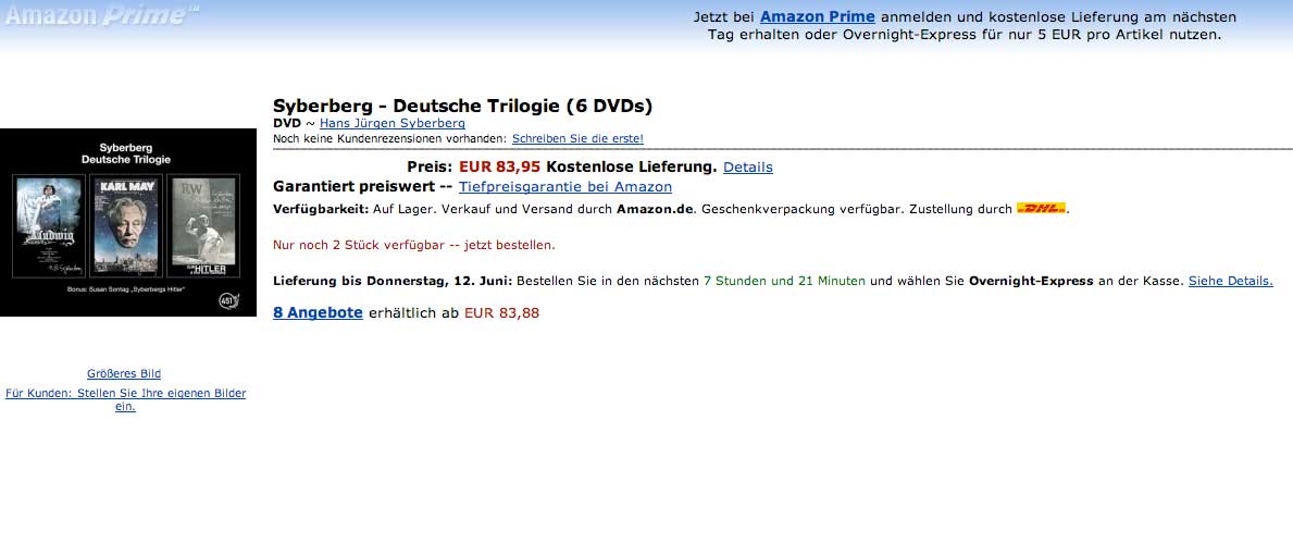 Seit Erscheinen dieser Box der 3 Filme Ludwig/Karl May/Hitler Ende Februar in Deutschland keine Zeitung, die dazu etwas wusste. Zu Hitler ja, zu Karl May ja. Zusammen? immer noch. Irgendeiner schrieb in Österreich, ob die Welt diese Box brauche... Wer sie hat weiss mehr.