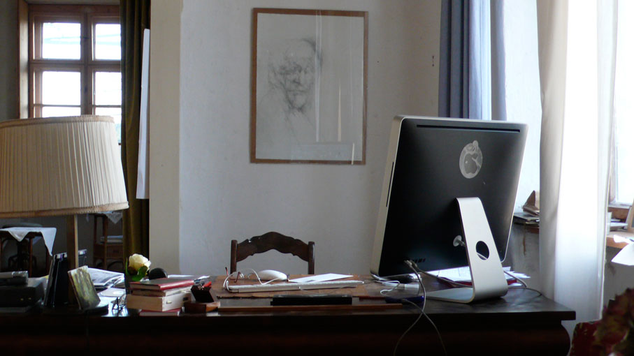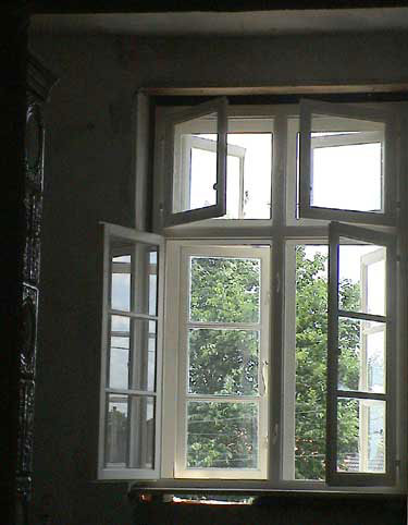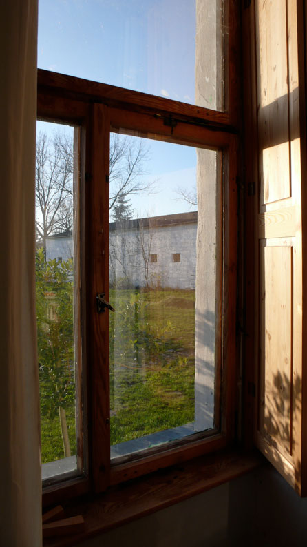 Die Geschichte dieses Fensters zeigt es nochmal in Paris und nun nach seiner Rückkehr und Wiederherstellung hier am Ort wie es herkam und wo es hingehört. Der Baum davor weg und der Blick hinaus verboten von allen Gerichten, auf Sonnenaufgang über das Land und den ehem. Seitenhof, den gestohlenen Blick. Jetzt mit Blick auf die selbstgeschaffenen Welten. Was sie nicht nehmen können.