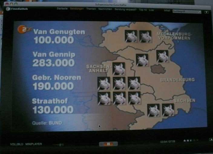 Deutschland aber 2008 als Müllhalde Europas. Die Schweine, die sie in Holland nicht wollen nun im Osten, wo der Weg dafür vorbereitet war. Und weitere Planungen direkt in der Nähe. Tierfabriken. Aber nicht nur das Elend der Tiere ist gemeint, Strassen für Kadavertransporte quer durchs Land und Leere und Verelendung der Böden und Gewässer und Menschen