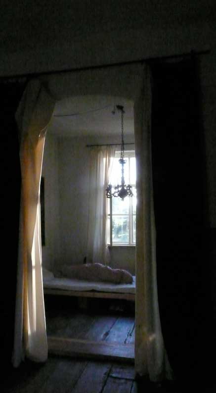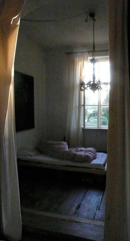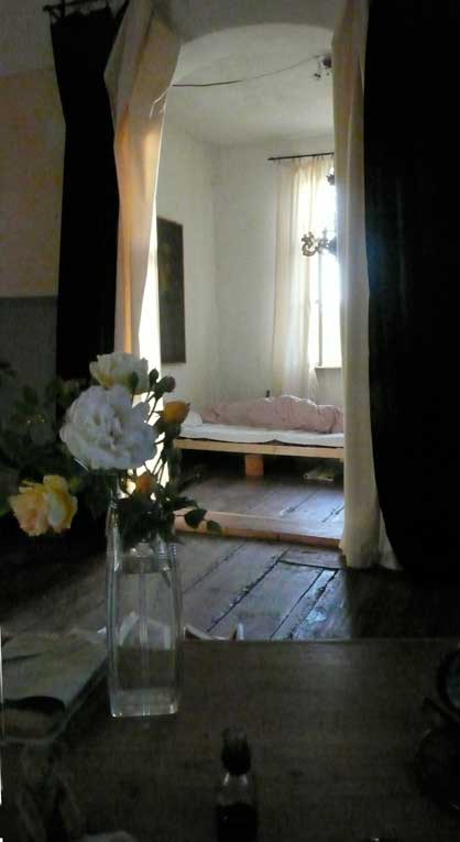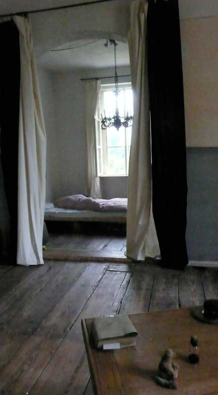 die Schwalben über dem Bett,trotz aller Freude, waren nicht vereinbar, also aus dem Schlafzimmer das Bett ins Ankleidezimmer und den morgendlichen Tisch von dort in die Ecke des Schlafimmers.