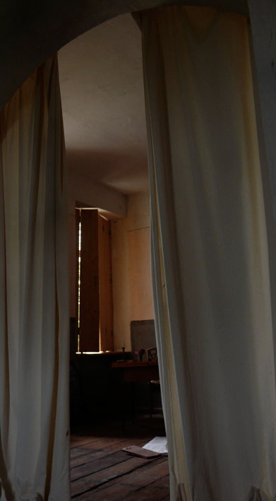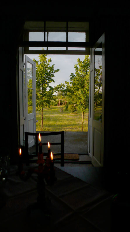 unsere Lebens-Szenen in Filmen, des Fernsehns zum Beispiel, sehen wir oft in engen Räumen und neunen Materialien. Wie anders, weniger eng und wund, sind Umarmungen, Dialoge am Abend solcher Tage wie jetzt, denke ich mir, mit etwas mehr Raum und alten Türen oder Fenstern und auch Platz um uns? Anders gehen die Gedanken auch über uns wenn sie Ruhe finden in der Geschichte der Dinge.