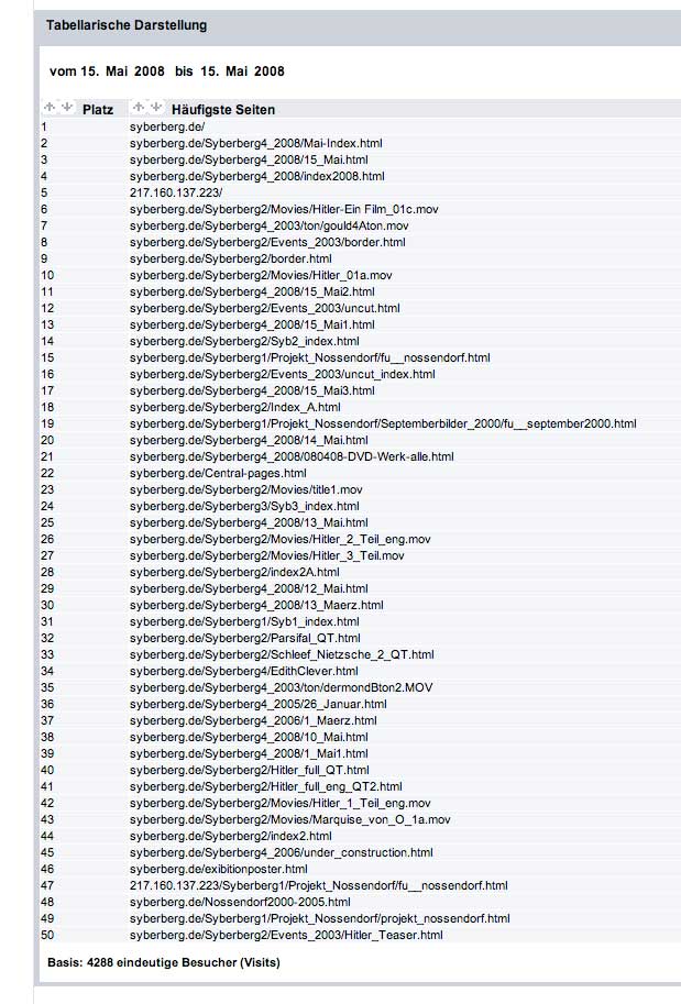 Interesting: in the daily visits (yesterday 4288) we see the Panasonic-page of total damage at the 11.rang directly after the Hitlerfilm(internat.hit)