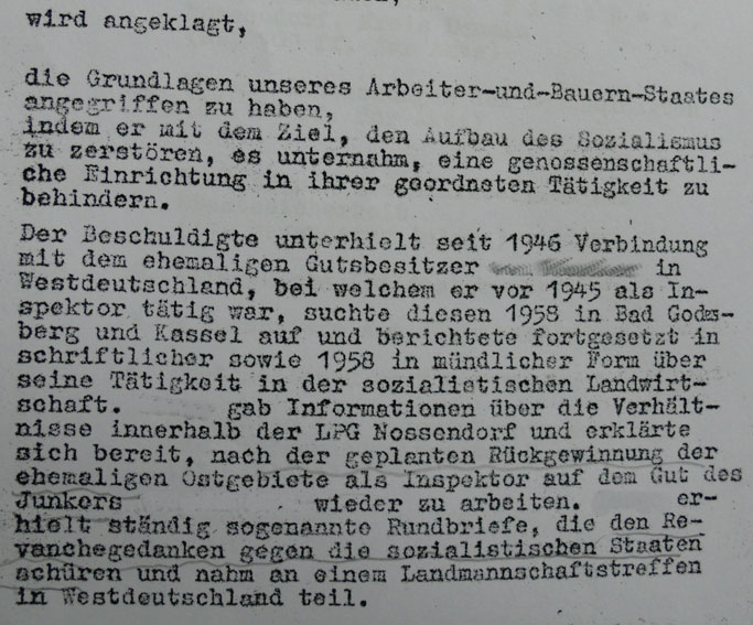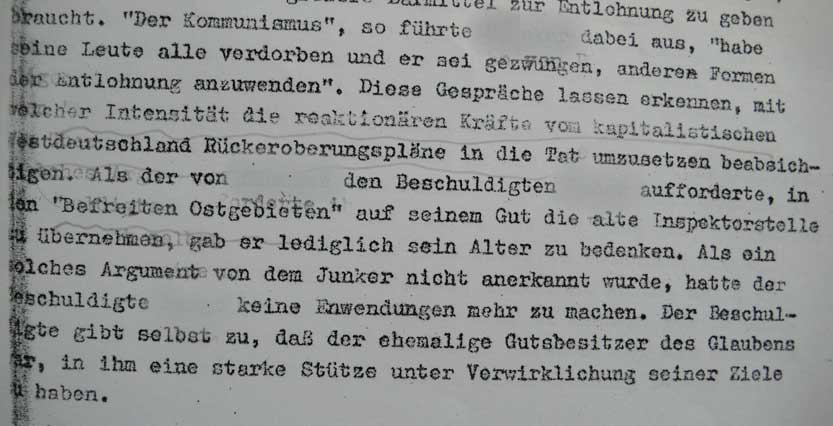 Dieses Dokument meint hiesige Leute, nicht fremde, ferne unbekannte Junker aus dem Osten, aber den kronkret gefürchteten eigentlichen Besitzer und Erben, dem sie wegnahmen, was sie nun hatten, mit Blut und Tränen und dem Fluch der Zerstörung beladen. Und so meinte ich mich von Anfang in meiner Entscheidung zurückzukommen, getroffen von diesem Ungeist, mit allen Anschlägen, Forderungen, Beobachtungen, in allem, was ich tat.
