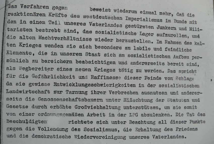 Von unserem damaligen Kanzler verraten, an solche die uns Revanchismus, Reaktionismus als Wegbereiter neuer Kriege vorwarfen. Vertreten heute von einer Kanzlerin, die so erzogen, sich müht dies zu vergessen, von Kollegen des Westens mit elitäen Marx- Nostalgien umgeben, tief in der Falle des Kapitals und Konsums, derselben Urheber lebensverderbenden Systeme gefangen, wie sollte, so musste es versucht werden und wenn die Welt voll Teufel wäre. Nicht nur Häuser und Landschaften, Parks und Kulturen können verkommen. Und wenn wir heute zeigen, am Vorabend von Nacht und Traum vor dem Fall der Mauern und vor der Öffnung der Dokumente wie es geschah, ist das böse und zu wünschen, dass es nicht wäre, was sie da schrieben sagten und taten, wie sie dachten? Was wir hier tun, ist für auch die mit, die solches taten, solange es geht.
