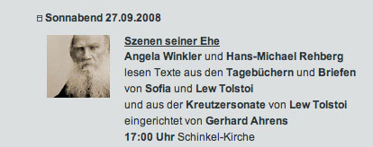 In Neuhardenberg nun also Tolstoi von unserem G.Ahrens eingerichtet, was wir im Verlorenen Auftrag 1990 abschied nehmend entwarfen noch für eine Person. Viel Glück also !