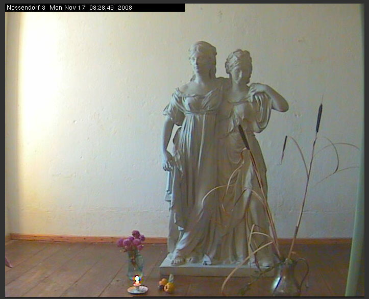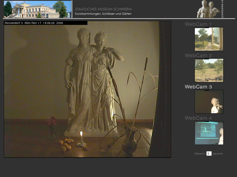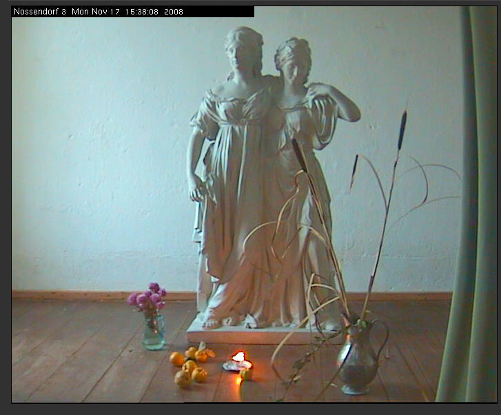 Als aus Schwerin gerade diese beiden Figuren zur live-Übertragung ins Schweriner Haus gewählt wurden, waren allen bewusst, der verbeigehende Besucher würde den langsam sich erweisenden Wechsel nicht merken und meinen es sei ein Foto. Und doch entschieden wir so als Zeichen sanfteren Gesetzes.