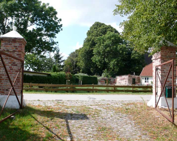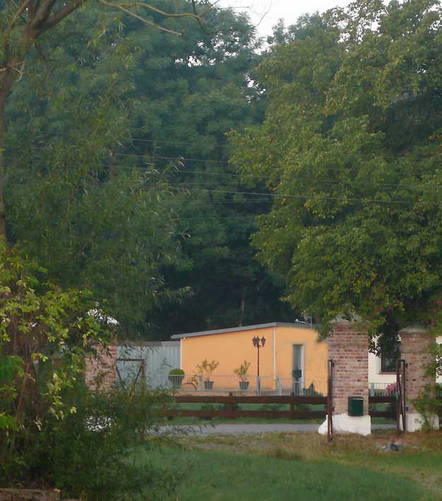 Die alten Back-Steine der Pfeiler in mosaikartiger Verteilung sind ein Mass, dass mit der Natur des Grüns oder anderer Jahreszeiten sich gut verträgt. Vor dem Grellen der heuigen Farben haben sie kaum eine Chance als wegschauen und warten, dass jenes als kümmerliches Irren, wie so vieles, mit der Zeit verfällt.