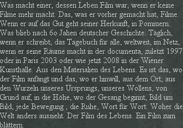 er vorher gemacht hat, Filme. Wenn er auf das Gut geht seiner Herkunft, in