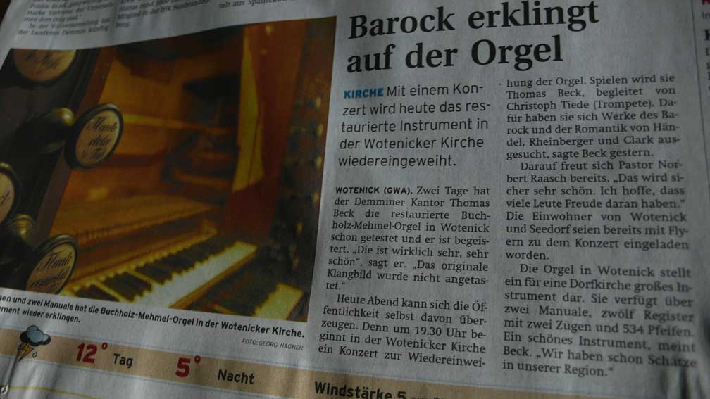 In Wotenick. gleich bei N. Einweihung der restaurierten Orgel