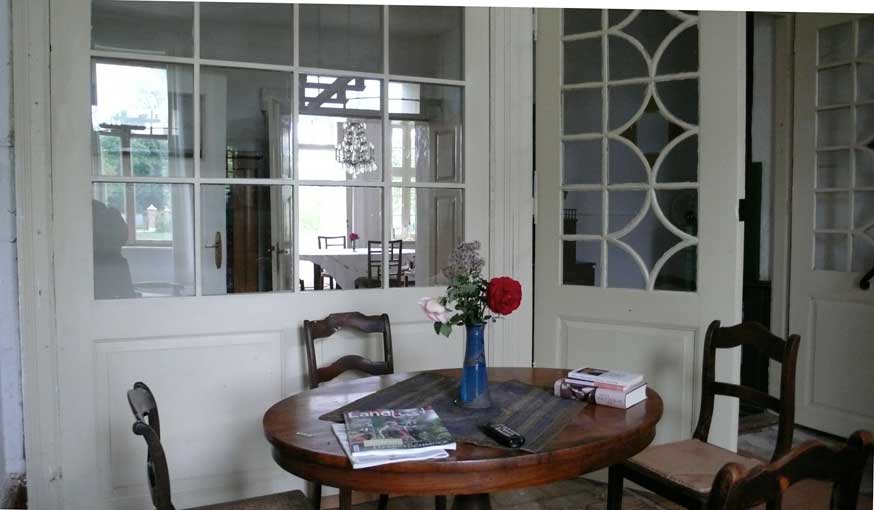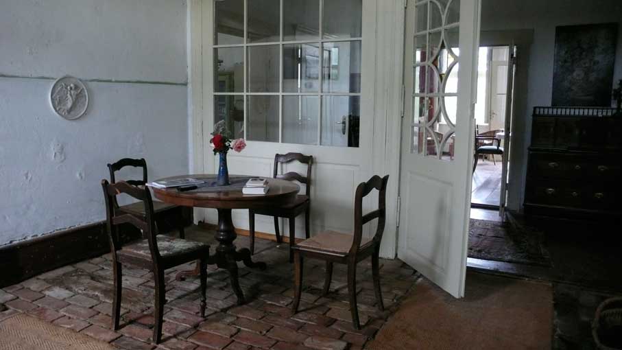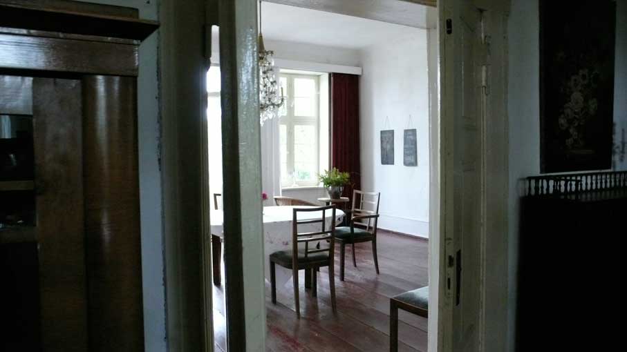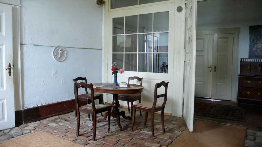 Der neue Versuch im Eingangsraum des Hauses was man Diele nennen könnte Ordnung um einen dazu passenden Tisch zu schaffen mit 4 Stühlen gleicher Art.