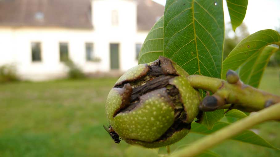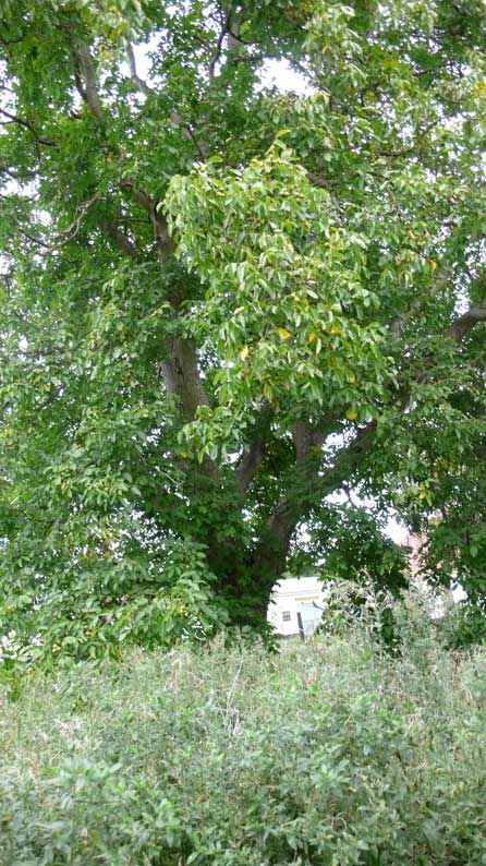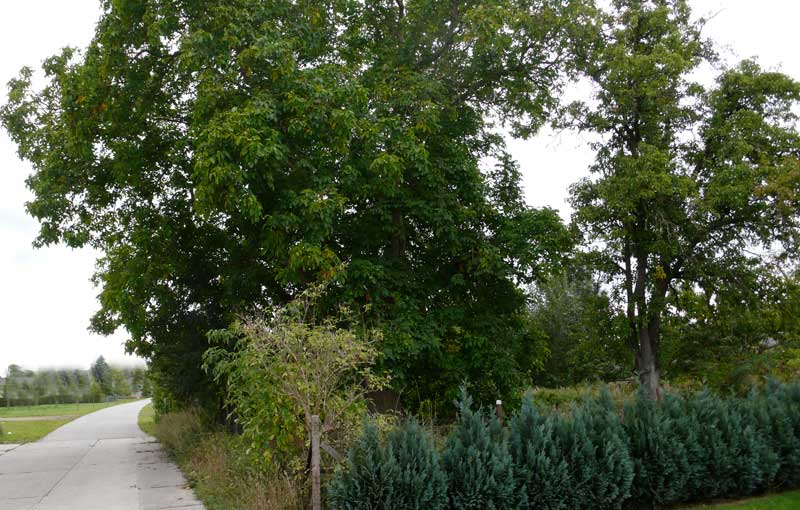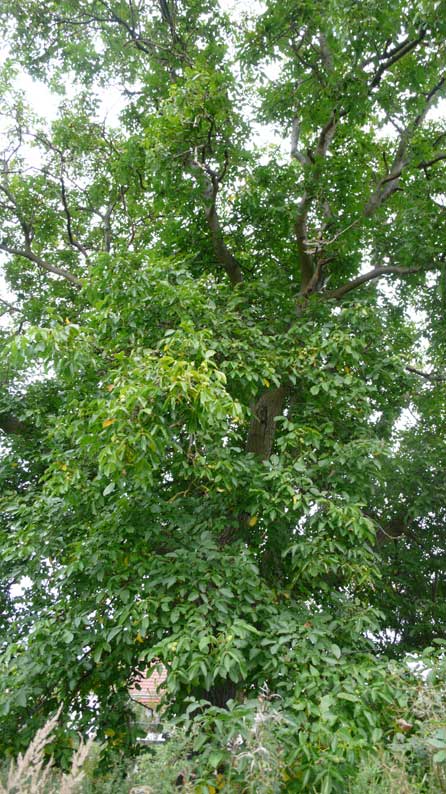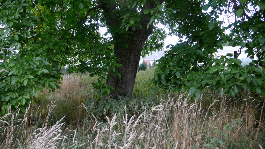 Früher Klingenberg, ob vor dem Ende auch der Vater übernommen, ich glaube mich zu erinnern. Heute parzelliert Eins P.Feurwehr, das Haus ein Wessi, der sich nie sehen liess, grau und verkommen, Scheiben eingeschmissen, und eben dieser Nussbaum mit offenen Zäunen für die Kinder.