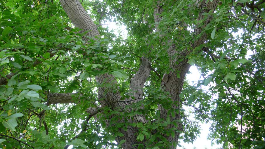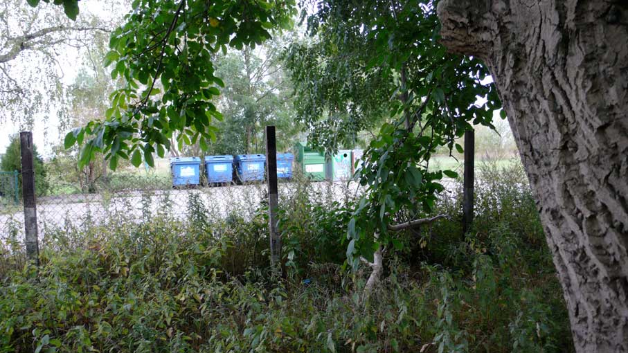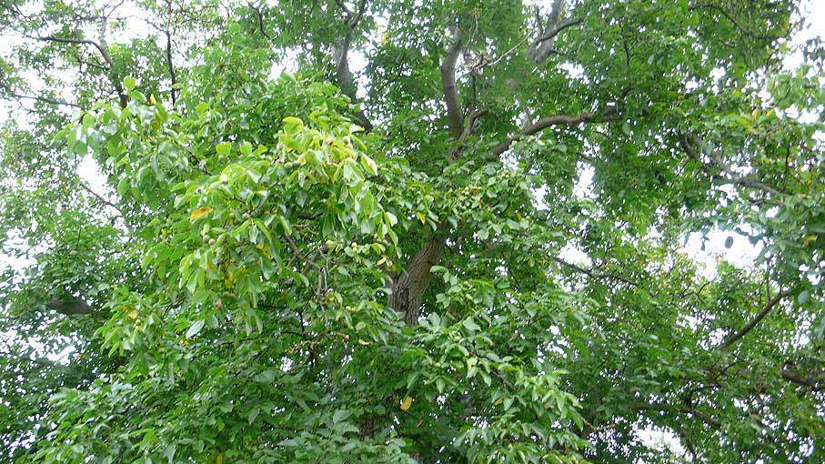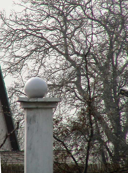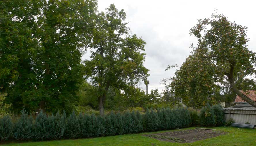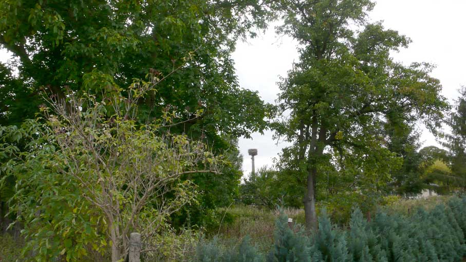 Wenn wir nach Süden schauen weiter was die Kamera gerade noch mit ausgestrecktem Auge des Zooms erreicht, die Nüsse, der Baum über die Grenze und Strasse in unbelaubtem Zustand. Gross und wie hier nicht gelassen.