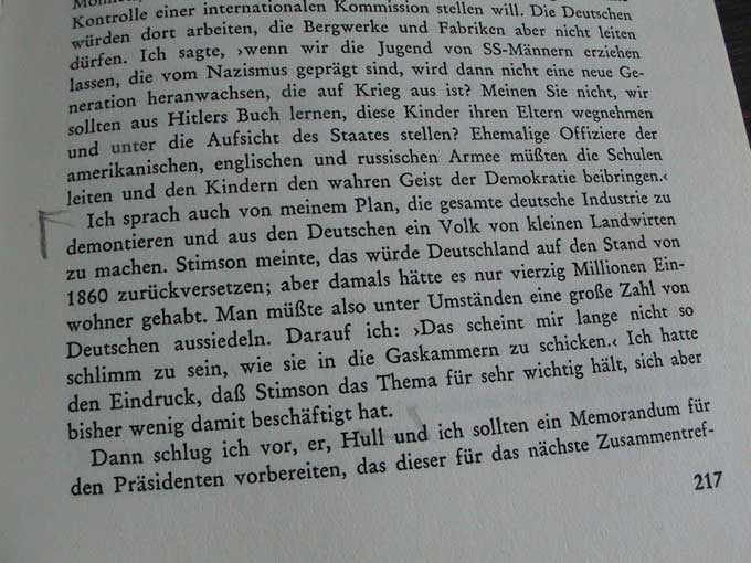 Auf der Suche nämlich nach einer Antwort auf die verherende Situation in den Dörfern und Landschaften unten den Menschen und Tieren oder der Natur in der ehemaligen DDR, einer biblischen Verdammung vergleichbar, und wie es dahin kommen konnte, und nach Einfluss der DDR und Su. warum nach dem Fall der Mauer dies alles vom Westen mitverantwortet und insgeheim gewollt wurde, und wie geheim das gehalten, mehr als konspirative Schwüre nach der Aufdeckung von steuerflüchtigem Geld nächtens in Koffern über Grenzen gebracht, ergab sich, dass der alte Plan des Morgenthau dies alles genau im Sinne einer Rache voraussagte. Nämlich nicht nur ein Ackerland sollte Deutschland werden, als idyllische Landschaft gegen die Industrie einer Fortschfrittsentwicklung der Menschheit, die er zu verhindern suchte. Ausdrücklich wurde die Zerstörung der alten Landwirtschaftsstrukturen durch Enteignung der historisch gewachsenen Kulturen entworfen und das unter Vermeidung von Öffentlichkeit, da der amerikanische Wähler soewas nicht gutheissen würde. Wie das aber sich in der Geschichte realisierte, durch wen und was und wann, ist abenteuerlich und wie alte Mythen vom Fluch erzählen, die uns oft die eigentliche Wahrheit berichten, jenseits dessen, was wir dafür ralitätshörig dafür als wahrscheinlich halten.