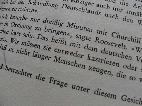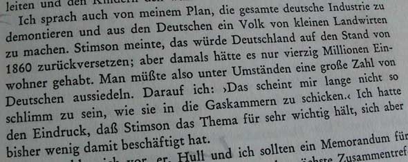 Neben den Plänen M.s die Gebiete Östlich der Oder/Neisse an Polen und Russland zu geben und Deutschland nach dem Kriege aufzuteilen - also durchaus Realität gewordener Gedankeni, ist hier noch ewas interessant. Nämlich, wie er sich das Ackerland vorstellte zu dem Deutschland werden sollte. Und immer als Rache für Auschwitz. Und wie sich das mit der östlichen Realität heute vergleichen lässt.