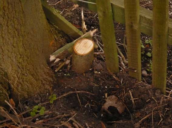 um diese jahralten Hollunder und Grenzsträucher abzusägen, musste man um den Zaun herum auf das hiesige Grundstück sich begeben
