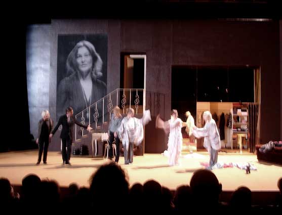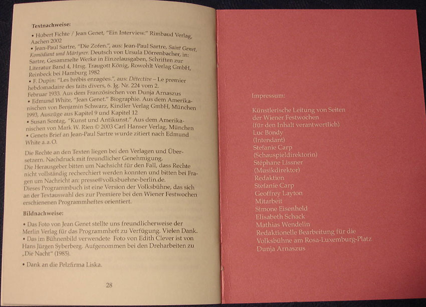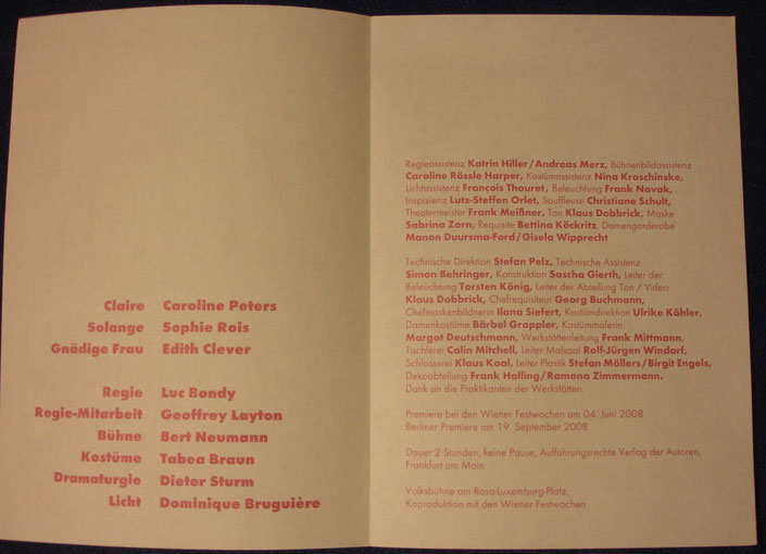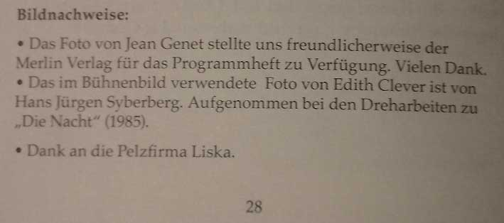 Premiere Zofen/Edith Clever Berlin Volksbühne, diesmal mit korrektem Hinweis im Programmheft auf die Herkunft des Bildes aus der Nacht in der Mitter der Bühne.