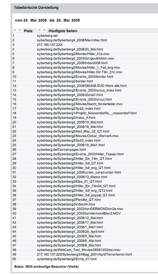 Wenn ich heute gefragt werde, trifft mich diese Frage in einem anderen Moment meines Weges, nach dem vorher Getanen, wo ich nun um mich viel Unheil und Schuld sehe, die ich selber erfahren habe, seit ich zurückkam an den Ort meiner Geburt und die Landschaft der Kindheit verwüstet erlebe, Haus und Hof verkommen wie in einem Alptraum( WWW.Syberberg.de. Aus dem Jahr 2000 ff), die Menschen verstrickt in einer seelischen Deformation, die schwer auszuhalten ist, wenn man sie von früher her kannte und eine Gegenwart verbaut durch Segnungen, die eher zerstören als Hoffnung da herauszufinden. Alles aus historischen Entwicklungen, im Osten Deutschlands, nach dem Fall der Mauer. Post-wall-Europe situation. Sie werden sagen, was ist dies gegen das, was ich meine. Aber wir sind an dem Kern der Dinge. Auch hier ganz besonders an solchen Orten aus dem sensiblen Anfang unseres Lebens, wenn wir uns dem aussetzen. Und in gossen Zusammenhang der Kulturen. Also finden Sie mich in der Situation wieder einen Ausdruck zur Lösung zu suchen. Ich tue das in täglichem Tun und davon zu berichten, indem ich eine heutige Form dafür suche, wie im Internet und meinen Räumen, die ich bisher machte (Paris 2003 und Wien 2008).