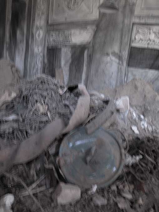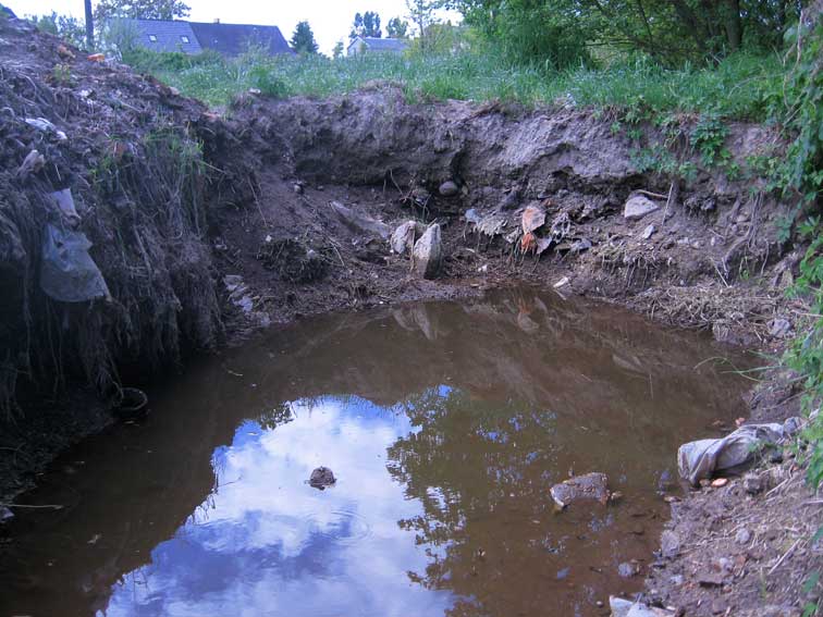 HInten in der Ecke des Parks war früher ein Teich. Bei dem Versuch ihn wieder zu öffnen. Das Loch und der Aushub. Gleich nebenbei. Mit einem Sandsieb zur Trennung von Müll und Erde erhalten wir in dem Deutschland Pavillon Venedings schönste Gegenstände des Erkennens.