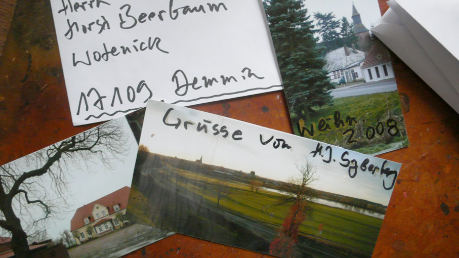 Wenn man ihn brauchte, unter den anderen, meist gegen sie im Kampf um die gerechte Sache, war er da, ein Anruf, und es klappte. Selbst unter Kontrahenten, und mit der Faust auf dem Tisch, er kriegte es hin. Schon jetzt als er arm war, in seinen Bewegungen behindert, Arme und Beine, fehlte seine Stimme. So mancher Brief wäre nicht notig. Der Weg zur Kirche, na, das wär was für ihn, den freizukämpfen gegen Kleinkrämerkonspirationen. Die Kirche ohne Licht, ein totes gehäuse ohne Geist - ein Anruf, keine Antwort, wenn man Geld bringt, was zu bessern, die würd er laufen machen, Haus Linden in Demmin, nicht seine Sache, aber welche Schande. Nun ist er weg, und mein letzter Gruss aus Wotenick ins Heim, bei der Tochter wieder im Westen die Bilder von Haus und Hof und Kirche zu spät.