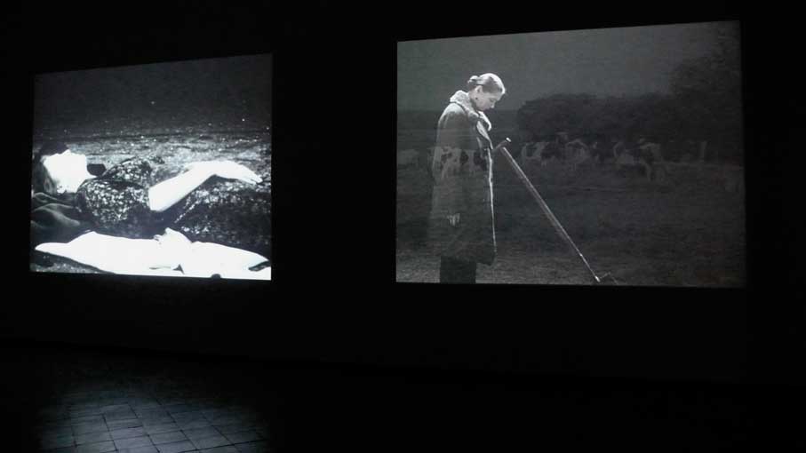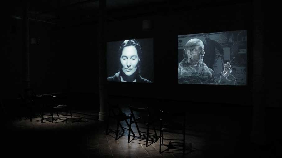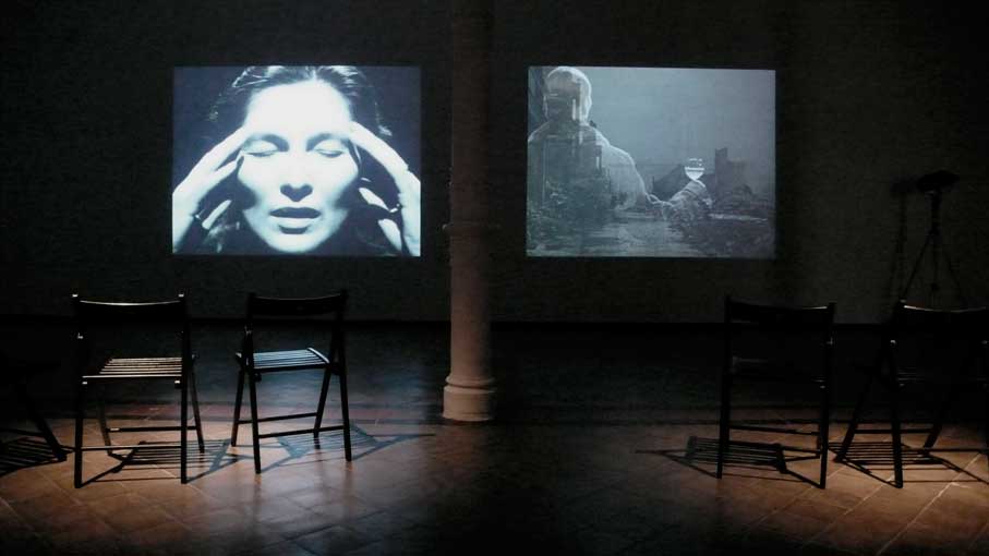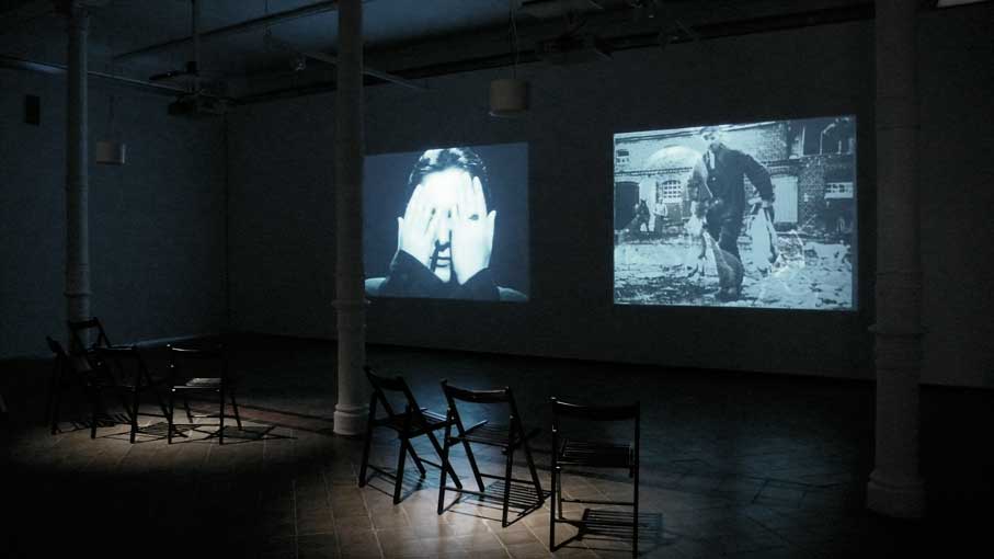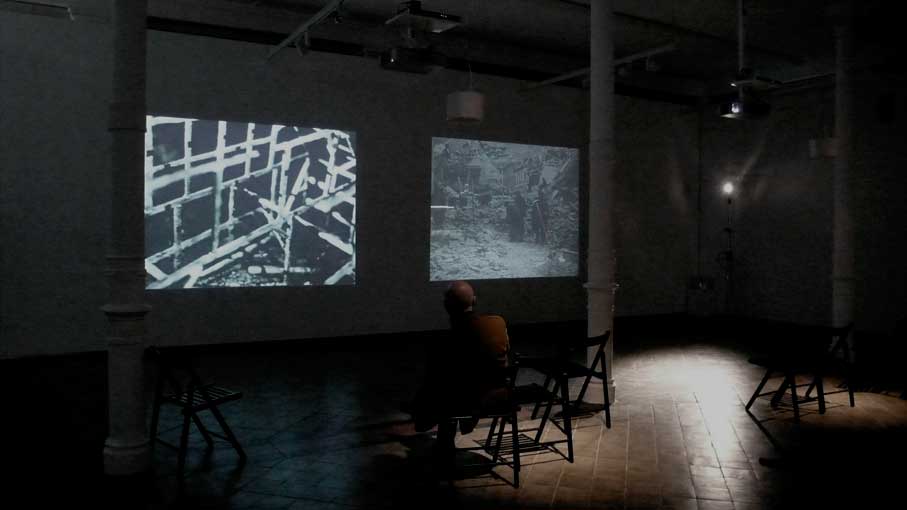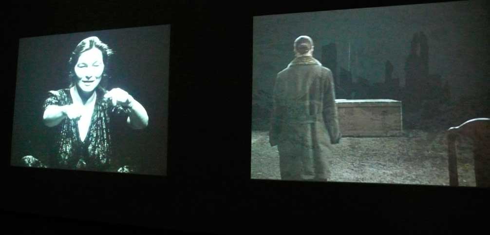 was bisher montiert war, rechts Die Nacht-links der Traum und dazwischen der Fall der Mauer mit 1o Jahren , ist nun zum Raum geworden, und authentisch parallel laufend eins.