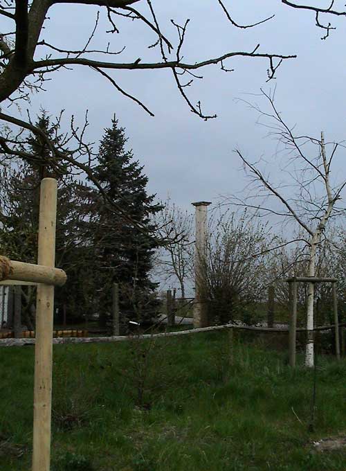 Lange wird es dauern bis die Bäume wieder hochstehen. Die selbstgewachsenen Stelen aus Holz helfen etwas zu markieren, woher das alles kommt und was wir sollen.