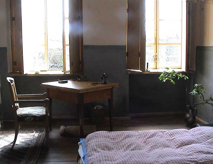 die Schwalben wieder da, von weit, in Afrika, hier her an Ort und Haus und Fenster/Nest.