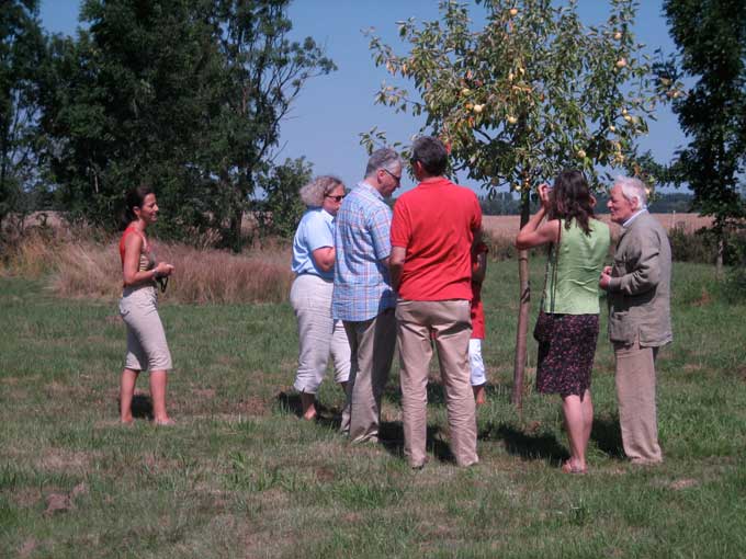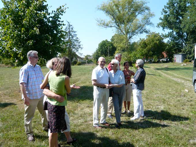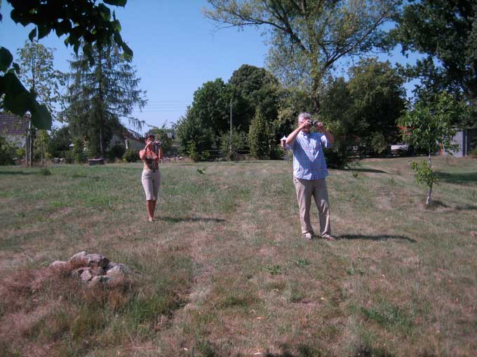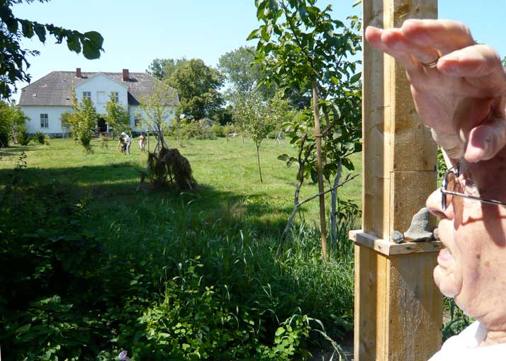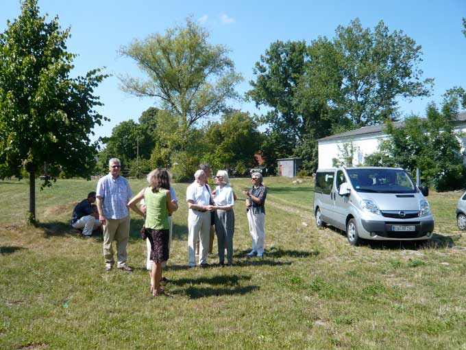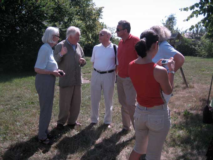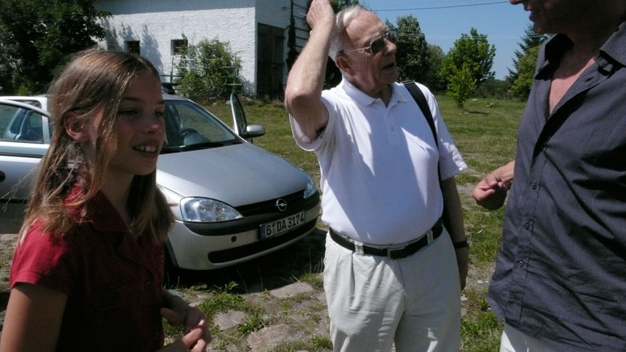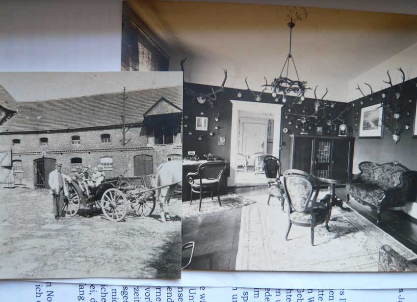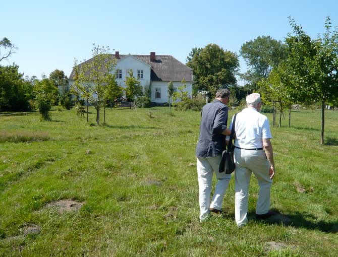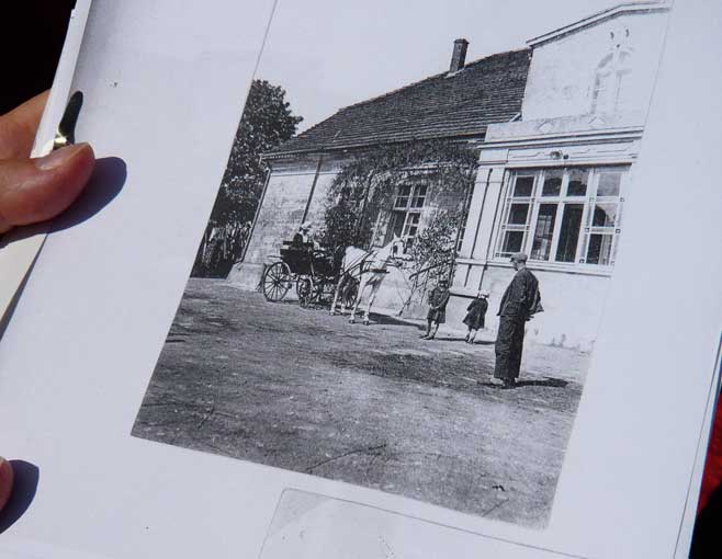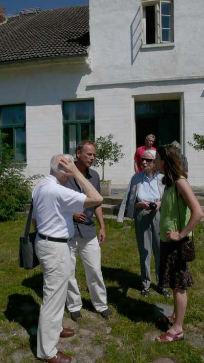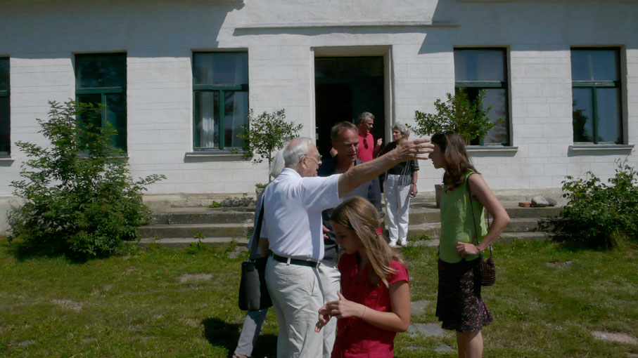 Besuch des Besitzers von N. vor uns, meinem Vater von 1918-25, Hernn F. und seiner familien mit Frau und 2 Söhnen und einer Tochter mit Frauen und mann und Enkel. Das alles aus Anlass des 90 geburtstages, denn auch er erlebte seine ersten Jahre in n. und lebt seitdem von diesen Erinnerungen, die wir nun grettet haben. Denn 1990, gleich nach dem fall der Mauer war auch er sofort hier und schämte sich, was er sah vor sich und die Frau dachte und sagte, wohl alles ein Irrtum der überbordeneden Phantasie. Nun sind die Ställe weg und der Hof nicht mehr der Hof als Pflaster und der Parl ohne die gewohnten Bäume, speziell die grossen Linden vor der Terrasse hinten und die Obstbäumewareb gefallen, alle, und der Garten weg Aber das Haus ist weder das Haus. Und auch den Kindern war es wieder das haus und der Ort, wo er gewesen, wie er erzählt und wovon und mit dem er seitdem lebt an den an den Wänden und in den Alben.