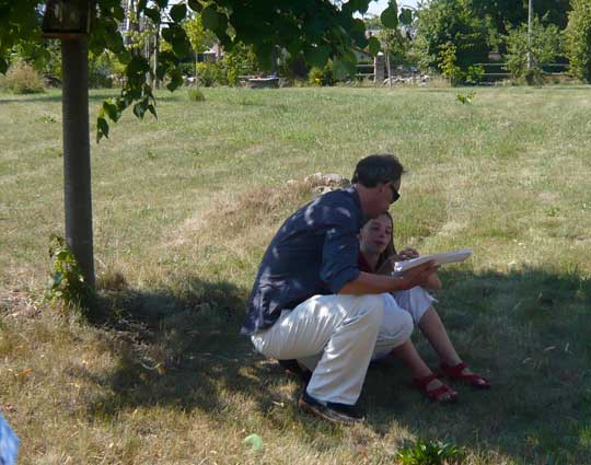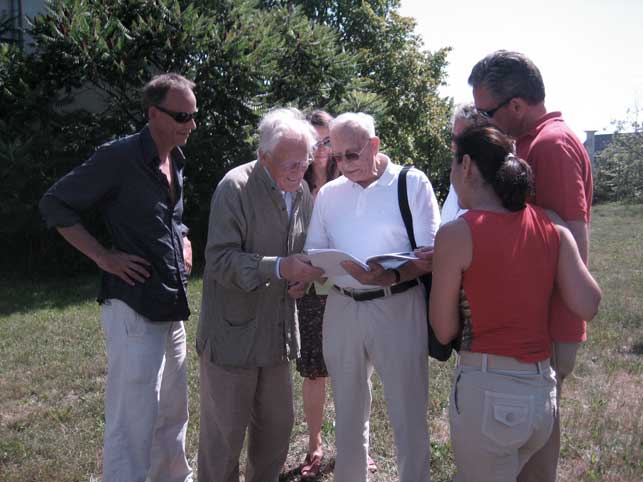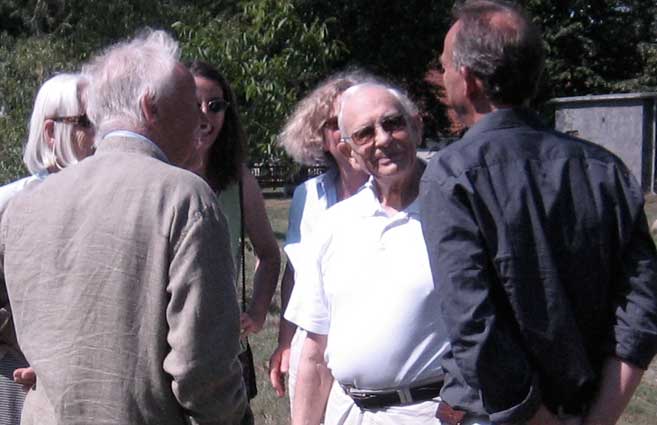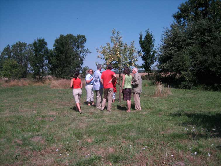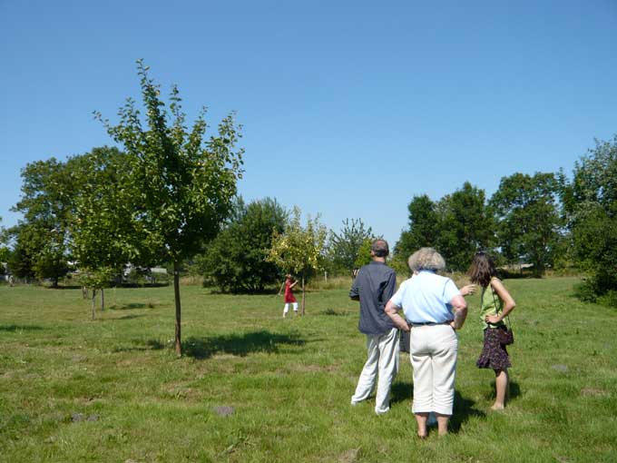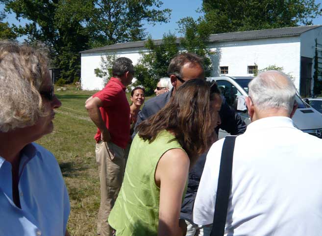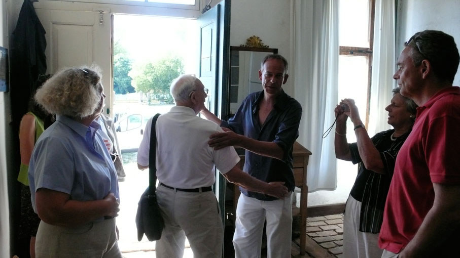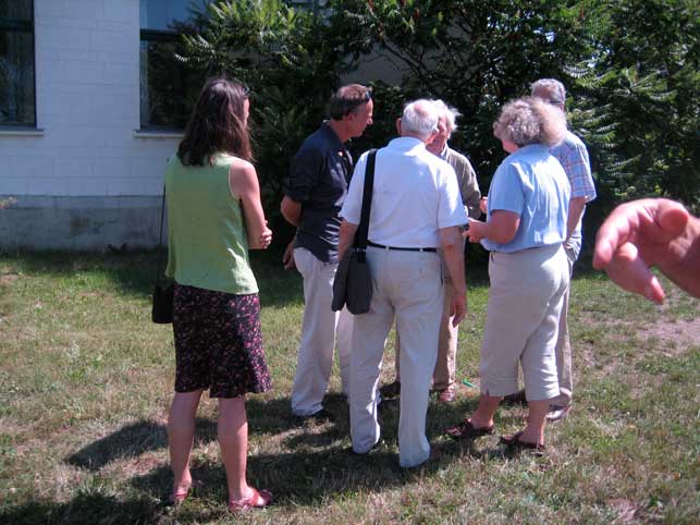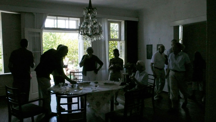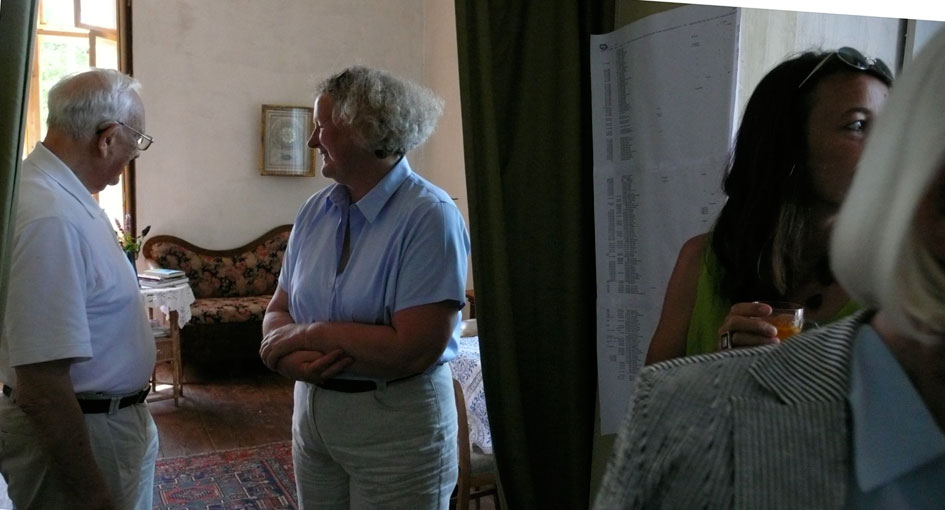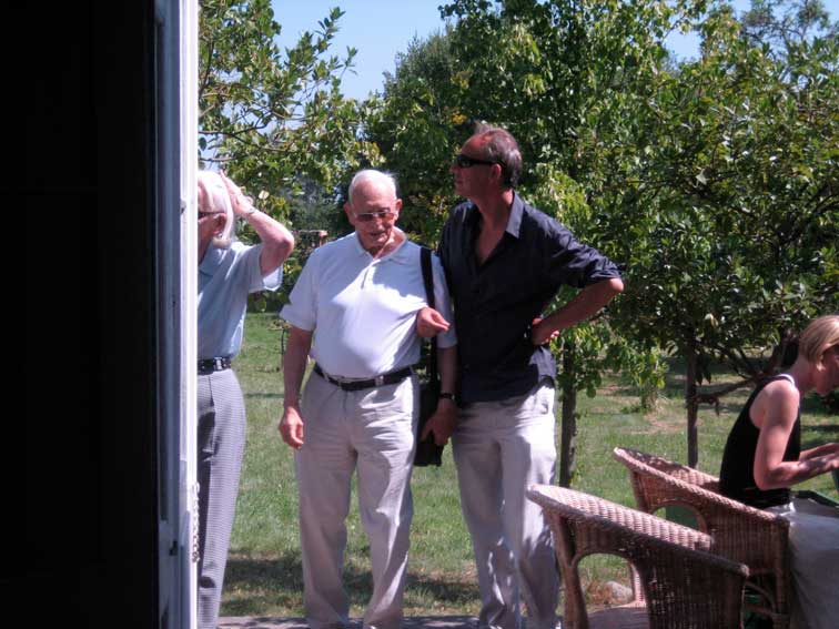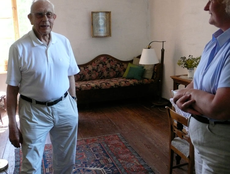 Besuch des Besitzers von N. vor uns, meinem Vater von 1918-25, Hernn F. und seiner familien mit Frau und 2 Söhnen und einer Tochter mit Frauen und mann und Enkel. Das alles aus Anlass des 90 geburtstages, denn auch er erlebte seine ersten Jahre in n. und lebt seitdem von diesen Erinnerungen, die wir nun grettet haben. Denn 1990, gleich nach dem fall der Mauer war auch er sofort hier und schämte sich, was er sah vor sich und die Frau dachte und sagte, wohl alles ein Irrtum der überbordeneden Phantasie. Nun sind die Ställe weg und der Hof nicht mehr der Hof als Pflaster und der Parl ohne die gewohnten Bäume, speziell die grossen Linden vor der Terrasse hinten und die Obstbäumewareb gefallen, alle, und der Garten weg Aber das Haus ist weder das Haus. Und auch den Kindern war es wieder das haus und der Ort, wo er gewesen, wie er erzählt und wovon und mit dem er seitdem lebt an den an den Wänden und in den Alben.