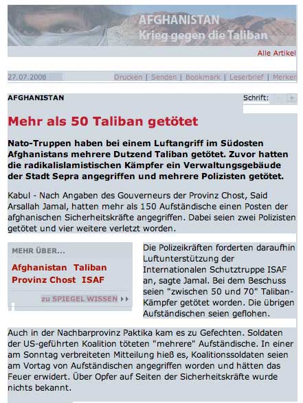 so ungefähr liefen die Nachrichten im letzten grossen Kriege Europas vor dem Kinde jeden Tag von Toten der Feinde mit Siegesgeschrei der Trophäenzahlen. Aber wo ist die BBC - Gegenstimme auch da verboten unter Ausschluss vom Leben, wenns rauskam, und darum interessant, dazu.