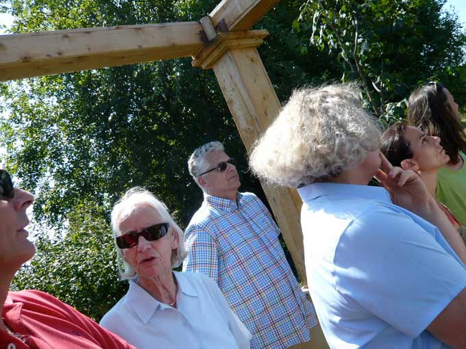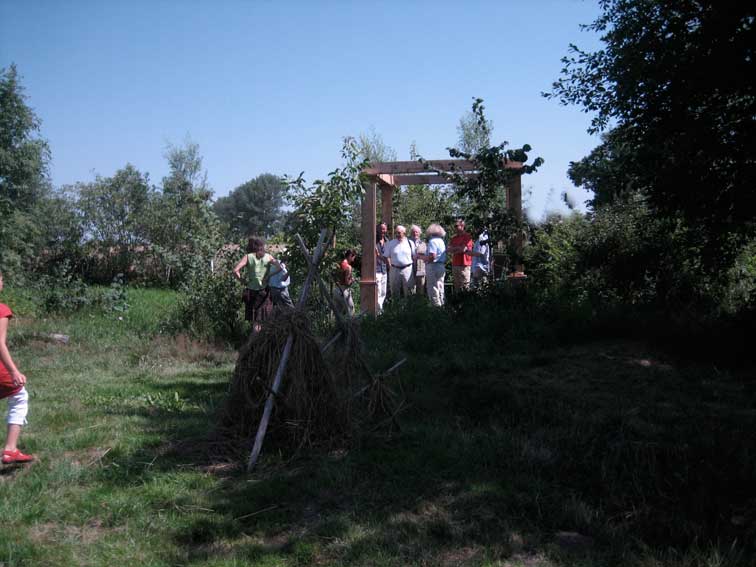 das Tempelchen rechtzeitig fertig zum Blick nochmal über alles zurück und neu nun von uns. Ja da hinten die felder, Feldscheune Früher und der Weg hinaus.