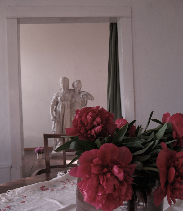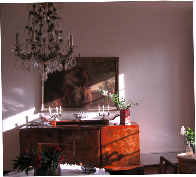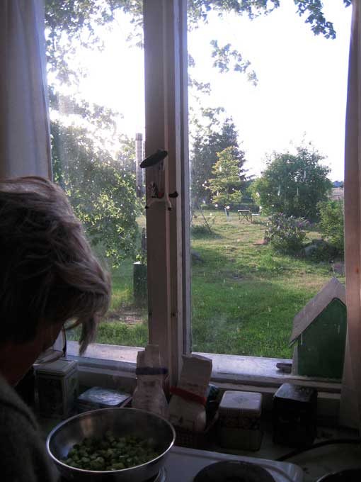 Kastanien gab es hier nicht früher. Von hier sehen wir das was geschafft ist. Freundlich einladende Augen. Gut, dass es uns bleibt. Den neuen Weg dahin täglich tretend mit eigen Füssen, bloss und durchs Heu der eigenen Wiesen. Wie auf den Bergen nach den glitzernden See, der uns aufnahm. Nach der Flucht. Nur die Hütte fehlt, die freundliche. Die alles barg.