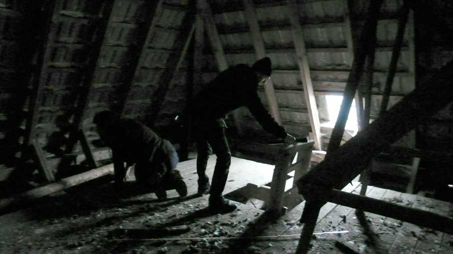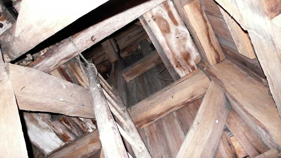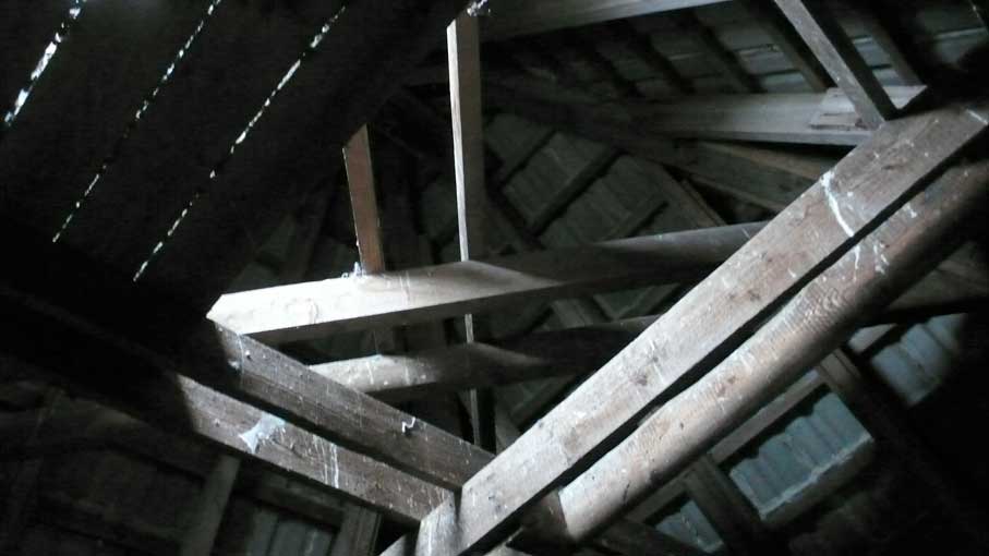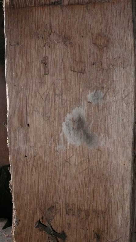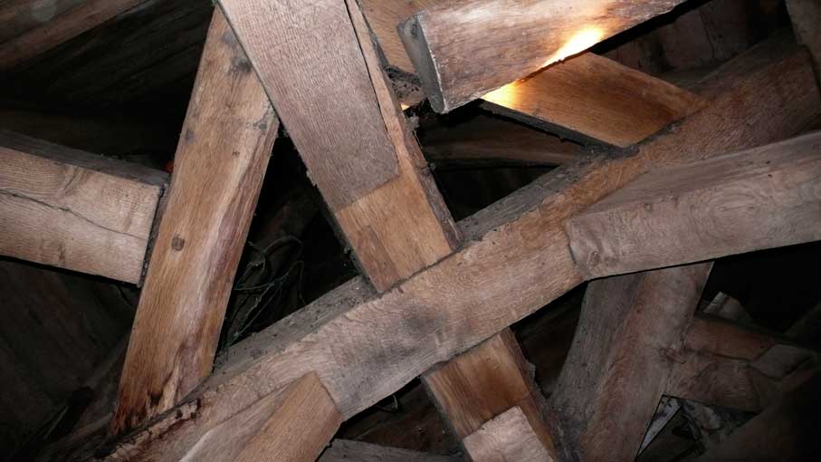 die historischen Materialien der mit dem Beil zugehauenen Balken