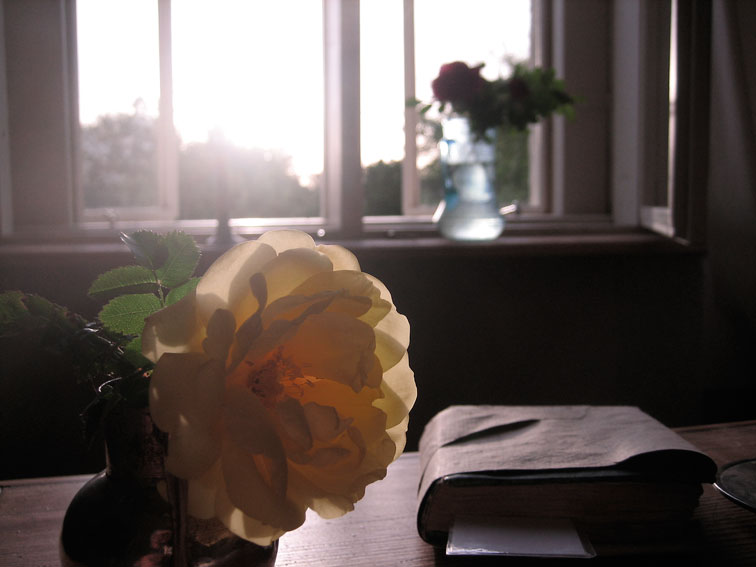 und links die Leinendecke des Bettes aus Grundsee bis Münchner Studienzeiten