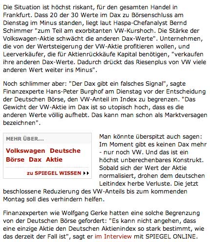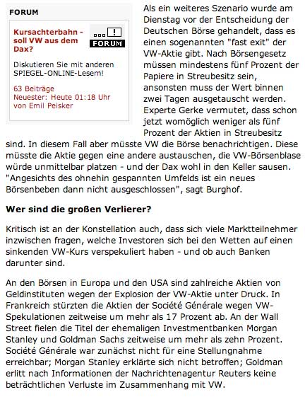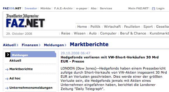 man hatte auf Verluste von VW gesetzt, um daran zu gewinnen