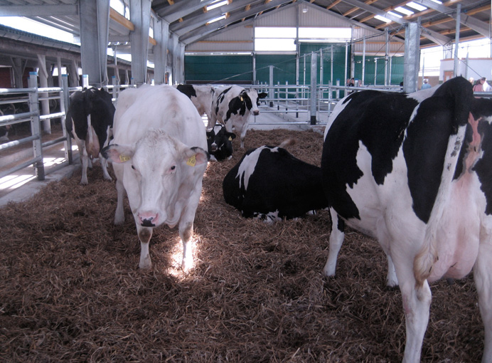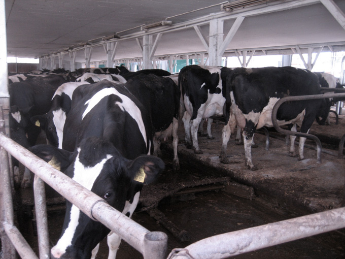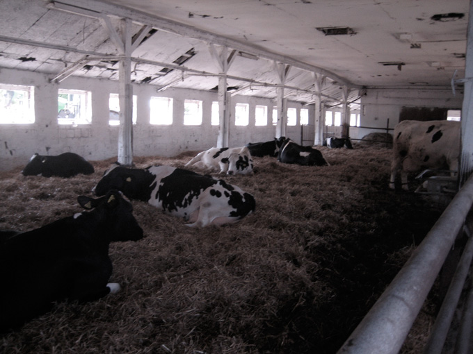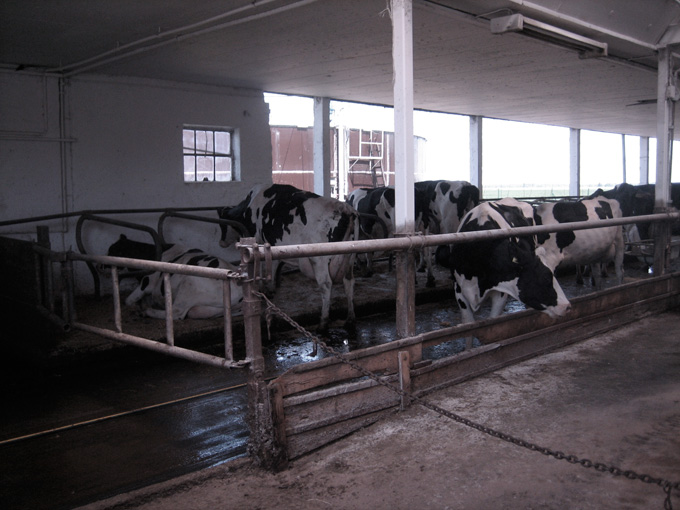 20-40 Liter gibt die Kuh am Tag. Sie steht so Tag für Tag bis der automatische Schieber Kot und Gülle unter ihren Füssen immer kommend und gehend wegräumt und die Melkmaschinen ihr die Milch abzapfen. Vor der Tür die Eimer mit dem Kraftfutter, dass das alles so sein kann.