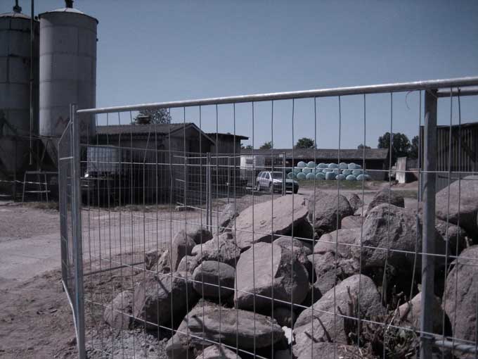 R.T. erzählt von seinen neuen Errungenschaften. Wir sehen 3 verschiedene Stadien. Einmal den alten LPG Bestand in DDR Grau, dann die neuen Anlagen und die alten jetzt überkalkten Ställe.