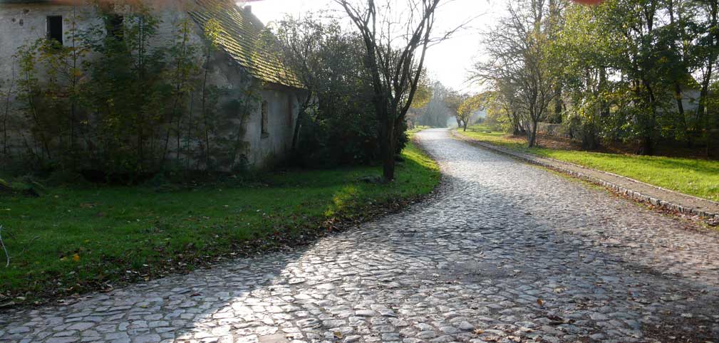 Die Fahrt in das Land der Ilse von Heyden Linden und zu dem Ort Gehmkow, dem Gegenstand ihrer Motive, und der Kindheit. Wie sie auch oft gefahren sein mag. Von Demmin auf den Strassen 12 KM. Mit alter Pflasterung noch zum Teil und Sommerwegen für die Kutschen oder Feldwagen der Pferde. Und in den Orten, die wir passieren, mit Fusswegen für die Menchen sorgfältig für Pferd wie Mensch.
