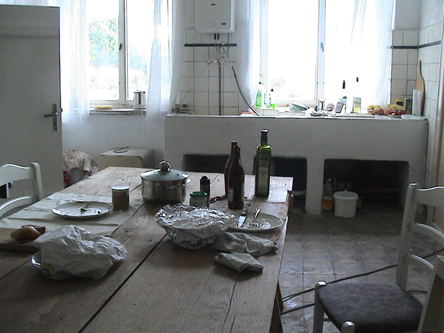 Remo, der Bewohner der garagen direkt neben dem Haus da vorne, auf die Frage, ob er denn mauern könnte, einen Pfeiler da vorne, wo sie alle standen, nur so zur Probe, statt bedrohlich zu sein, sagte sofort ja, aber er brachte Dirk, den Meistermauerer,wie er ihn dann nannte, den ich nicht sah, wenn ich in München war insgeheim, der es machte. Aber zur Weihnachtsfeier, der ersten wieder im noch zugemauerten Haus am 16. Dezember 2002, sass plötzlich einer, den er Dirk nannte und der es nicht fassen konnte, dass ihn einer wollte, ihn, den Säufer von Anfang an und überall vorher rausgeschmissen. Auch er bkam sein Hemd, mit dem N. wie alle anderen mit ihm. Er aber blieb. Als die anderen gingen.