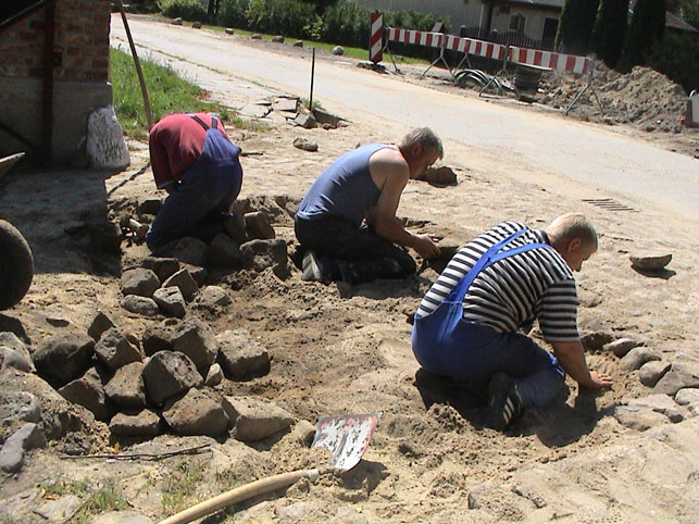 Als der Bürgermeister ihn tadelte, für die Steine in der Einfahrt, und andere suchte, die das noch mal machten der Fliesenleger von den eigenen Leute gehöhnt, dem Mauerer das Pflaster vermieste, war es gut 3 Jahre später im Hof, wo keiner was sagen konnte, noch mal zu zeigen, was er kann.