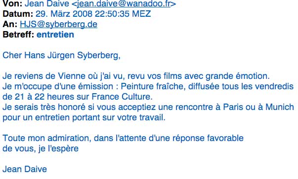 Auf der (sehr empfehlenswerten) Seite des centre international de poésie Marseille, dessen Direktor Jean Daive ausserdem ist, finden Sie eine Lesung von Jean Daive.