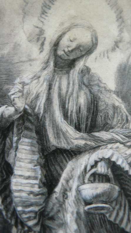 Dorothea, Theophilus, Christe et Calliste, MM. (6. Febr.). Vom Griech. doron (Geschenk) und teos (Gott) = Gottesgabe, Geschenk Gottes. - Die hl. Dorothea, Jungfrau und Martyrin zu Cäsarea in Kappadocien, wird in der katholischen Kirche sehr hoch verehrt, und kommt ihr Name nicht blos im Mart. Rom., sondern auch im römischen Brevier vor, wo ihr Fest eine 9. lectio hat. In sehr vielen Kirchen, wie z.B. in der Domkirche von Augsburg, ist ihr Fest semiduplex. Von der hl. Dorothea sind Acten auf uns gekommen, welche ziemlich ausführlich ihre Leidensgeschichte enthalten; außerdem aber wird viel Unverbürgtes von ihr erzählt, namentlich seit dem Erscheinen der Legenda aurea von Jakobus de Voragine, Bischof von Genua, der manches Apokryphe in die Lebensbeschreibungen der Heiligen aufnahm. Nach dieser hieß der Vater unserer Heiligen Dorus, war Einer der römischen Senatoren, sehr reich an Aeckern und Heerden, an Palästen, Landhäusern und Weinbergen. Als aber eine Verfolgung über die Bekenner Christi ausbrach, verließ er Alles um Christi willen, und folgte mit seiner Gattin Thea und mit zwei Töchtern, Christe und Calliste, über das Meer in die Landschaft Kappadocien, in deren Hauptstadt Cäsarea er seinen Wohnsitz aufschlug. Hier wurde ihm eine dritte Tochter geboren, welche der Bischof des Ortes heimlich taufte und zugleich ihr einen Namen gab, der aus denen des Vaters und der Mutter zusammengesetzt war - Dorothea (Dorus und Thea). Dorothea ward schon als zartes Mägdlein mit dem hl. Geiste erfüllt, und übertraf, als sie herangewachsen war, alle Jungfrauen der Hauptstadt wie an leiblicher Schönheit, so auch an Zucht, Weisheit und Frömmigkeit. Dieß verdroß den Erbfeind alles Guten, und er beschloß, nicht zu ruhen, bis er die hl. Jungfrau entweder leiblich oder geistig verderbt hätte. Zu dem Ende entzündete er das Herz des Landpflegers Sapricius gegen die Jungfrau und gab ihm ein, mit Darbringung aller Schätze, die er besaß, um sie zu werben. Doch der hl. Dorothea däuchten alle Schätze der Erde verächtlicher als Spreu, und sie erklärte auf das Bestimmteste, wie sie keines andern Bräutigams begehre als dessen, der mit seinem Blute sie zu seinem Eigenthum erworben habe. - Wir wollten diese Nachrichten über ihre Eltern, ihren Namen etc. nur der Vollständigkeit wegen aus jener Legende anführen. Was die hhl. Christe und Caliste betrifft, so waren sie zwar Schwestern unter sich, aber nicht Schwestern der hl. Dorothea, wie Manche annehmen; vielmehr lassen die Acten erkennen, daß sie mit dieser gar nicht verwandt waren, wie dieß auch aus dem römischen Brevier hervorgeht, wo die hhl. Christe und Caliste nur Schwestern unter sich genannt werden. Derselben Ansicht ist auch Butler. - Ebenso unverbürgt ist es, was von der sündhaften Liebe des Statthalters Sapricius, der auch manchmal Apricius, Fabricius etc. heißt, erzählt wird. Nur so viel ist sicher, daß die hl. Dorothea durch Tugend, Weisheit und Glaubenseifer sich hervorgethan habe, und in Folge dessen bei dem Statthalter Sapricius angeklagt worden sei, der sie bei seiner Anwesenheit in Cäsarea vor sich kommen ließ. Hier vor seinem Richterstuhle entspann sich ein längeres Zwiegespräch zwischen ihr und dem Statthalter, der auf alle mögliche Weise sie von ihrem Glauben abwendig machen wollte; allein alles war vergeblich. Die hl. Jungfrau blieb standhaft, zeigte die Nichtigkeit der Götzen und suchte den Statthalter eines Bessern zu belehren. Glaub' es mir, Sapricius, sprach sie, daß mich nichts bewegen wird, den unseligen Geistern zu opfern, welche in diesen eitlen Menschen (den sogenannten Heroen und andern nach ihrem Tode vergötterten Menschen) gewohnt haben. Diese lebten so, daß es eine Schande ist, davon zu reden; sie sind gestorben wie vernunflose Thiere, weil sie im Leben den nicht erkannt haben, der Himmel und Erde, das Meer und Alles was darin ist, erschaffen hat. Die Seelen derer, die ihr unter verschiedenen Bildern anbetet, brennen in einem ewigen Feuer, und zu ihnen werden Alle verstoßen, welche ihren Schöpfer verläugnen und solche Götzen verehren. Auf diese Worte hin konnte der verblendete Statthalter seiner Wuth nicht länger mehr Einhalt thun; er ließ daher die hl. Jungfrau auf die Folter legen (in catasta sistere). Aber dadurch wurde sie in ihrer Standhaftigkeit so wenig erschüttert, daß sie ihn vielmehr aufforderte, mit den Qualen nicht zu zögern, sondern sie schnell zu vollenden, damit sie bald zur Anschauung desjenigen gelangen möge, dem zu Lieb sie keine Qual, auch den Tod nicht scheue. Hierauf gefragt, wer derjenige sei, dem sie sich ergegeben und wo er wohne, sprach sie von Christus Jesus und der Herrlichkeit des Paradieses. Er ladet uns ein, sprach sie, zum Paradiese seiner Wonne, wo die Gärten immerdar von köstlichen Früchten prangen, wo die Lilien allzeit in blendendem Schmucke erscheinen (albescunt), wo Rosen blühen, die Fluren grünen, die Berge lieblich zu schauen sind, die Hügel glänzen (ornantur), süße Quellen erquicken und die Seelen der Heiligen in Christo selige Wonne genießen. Hierauf ließ sie der Statthalter den zwei Schwestern Christe und Calliste übergeben, die kurz zuvor vom Glauben abgefallen waren. Er glaubte, durch diese könnte vielleicht die hl. Dorothea am sichersten zum Abfall beredet werden, und verhieß ihnen noch größere Belohnung, wenn sie seine Absicht erreichen würden. Wirklich redeten diese der Heiligen zu, sie sollte dem Richter gehorchen, indem es ja besser sei, das Leben zu erhalten, als in so jungen Jahren in den Tod zu gehen. Dorothea aber sprach dagegen mit so einnehmender Freundlichkeit, pries die Süssigkeiten der göttlichen Liebe mit solcher Begeisterung, schilderte die Freuden des ewigen Lebens in so glühenden Farben, daß Christe und Calliste bald von der schmerzlichsten Reue durchdrungen vor ihr standen, schluchzend sich ihr zu Füßen warfen und sie um ihre Fürbitte baten, daß Gott ihre Reue und Buße gnädig aufnehmen woll
