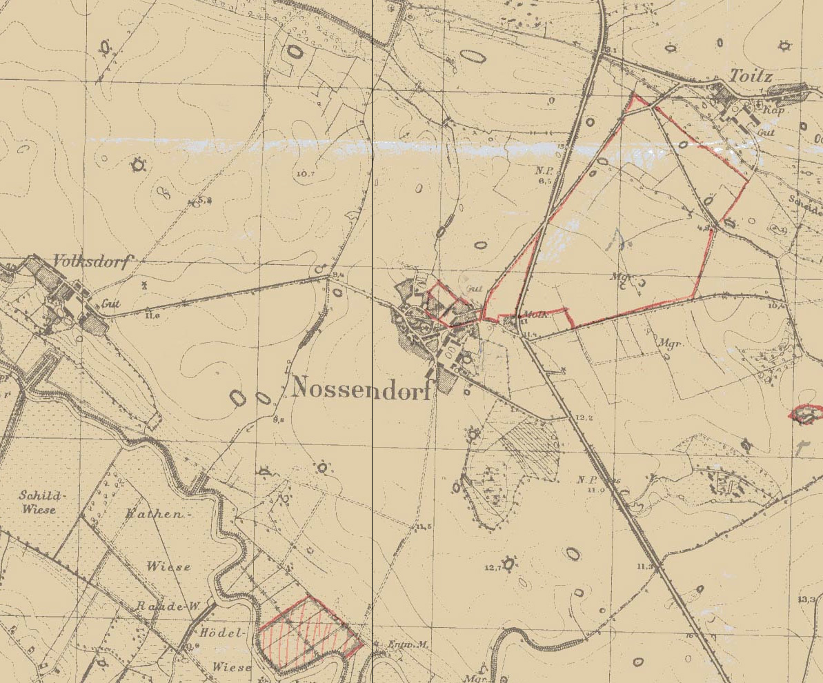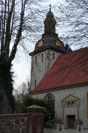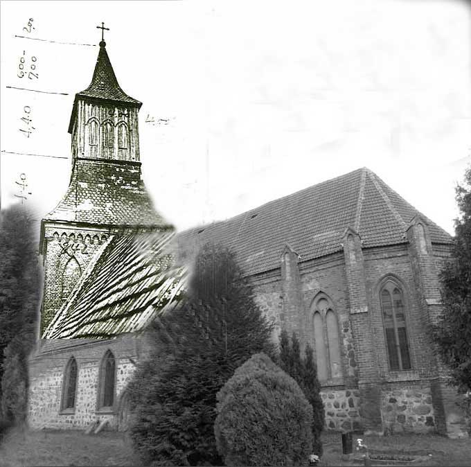 Alle hier genannten Dörfer der Umbegung haben Friedhöfe oder Kappelen, aber einen Kirchtrum nur N. und den haben sie nun entfernt. Nur Wotenick als Schwesterkirche mit dem Wohnort des Pastors hat noch eine Kirche mit gleichem Turm - und die ist deutlich kleiner.