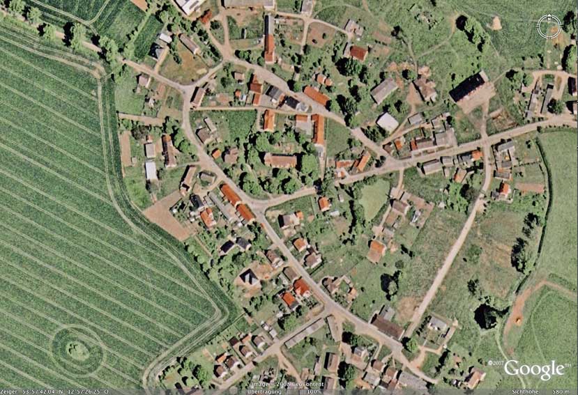 Die LPG-Struktur des Dorfes der 3 Güter -zwei davon vernichtet- und das 3. noch umgeben von den mörderischen Auflösungserscheinungen abgerissener historischer Ställe und neuer Nutzbauten im Plattenbaustil zwangen nach der Rekultivierung dieses Gutshauses als Rest in die Notwendigkeit sein Gegenüber in der Kirche wieder herzustellen, als Modell einer Welt, die nicht mehr die der LPG sein will. Wer die Kirche im Dorf lassen will, wird ihren Turm mit der letzten Glocke wollen müssen - zumindest über den Toten, immer.