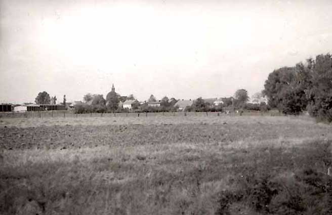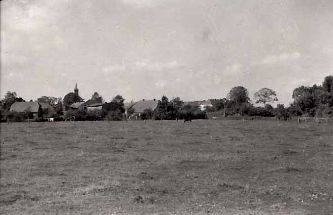 wenn es einen Postkartenblick gab von N. dann war es dieser. Und darin war die Kirche mit ihrem Turm sein Zeichen. Von en Toren des Gutshauses ausgesehen, wie sein Gegründer dort nun liegt auf Haus und Hof zu schauen.